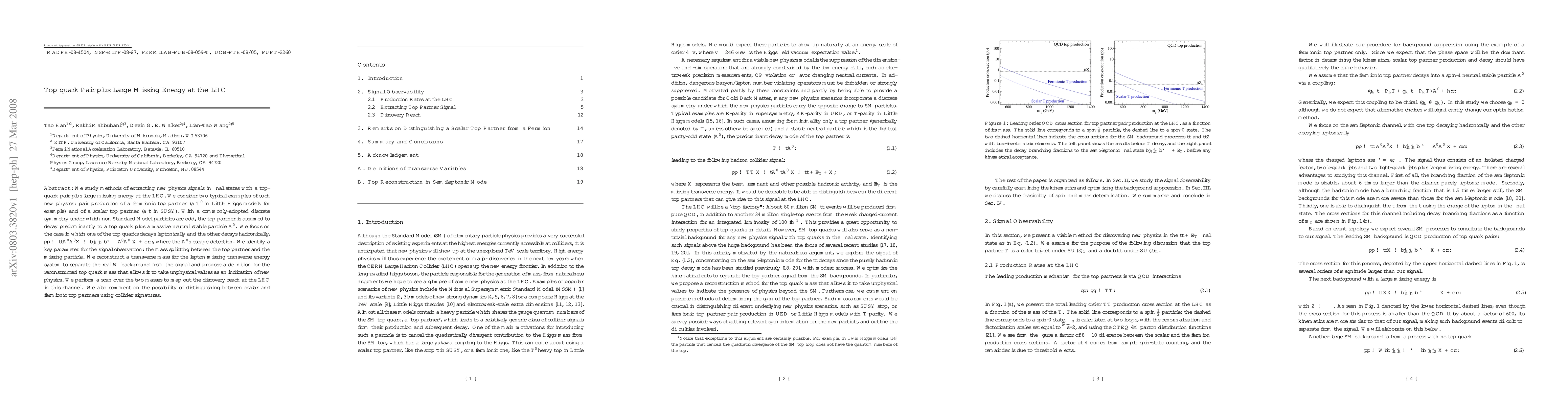 This paper investigates methods to detect new physics signals in LHC events featuring a top-quark pair and significant missing energy, focusing on the decay of top partners into a top quark and a stable neutral particle. It proposes a strategy to distinguish between fermionic and scalar top partners using collider signatures and maps out the discovery reach for these particles.