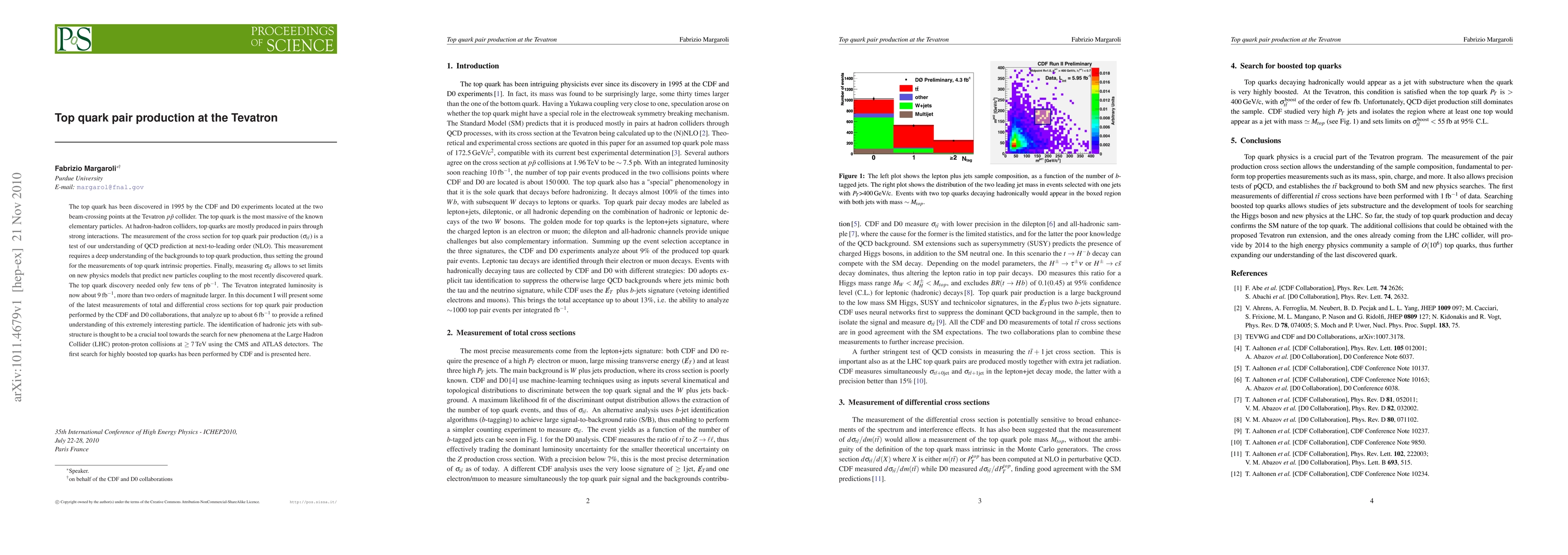 The top quark has been discovered in 1995 by the CDF and D0 experiments located at the two beam-crossing points at the Tevatron ppbar collider. The top quark is the most massive of the known elementary particles. At hadron-hadron colliders, top quarks are mostly produced in pairs through strong interactions. The measurement of the cross section for top quark pair production is a test of our understanding of QCD prediction at next-to-leading order (NLO). This measurement requires a deep understanding of the backgrounds to top quark production, thus setting the ground for the measurements of top quark intrinsic properties. Finally, measuring sigma(ttbar) allows to set limits on new physics models that predict new particles coupling to the most recently discovered quark. The top quark discovery needed only few tens of p-1 . The Tevatron integrated luminosity is now about 9 fb-1 , more than two orders of magnitude larger. In this document I will present some of the latest measurements of total and differential cross sections for top quark pair production performed by the CDF and D0 collaborations, that analyze up to about 6 fb-1 to provide a refined understanding of this extremely interesting particle. The identification of hadronic jets with sub- structure is thought to be a crucial tool towards the search for new phenomena at the Large Hadron Collider (LHC) proton-proton collisions at >= 7 TeV using the CMS and ATLAS detectors. The first search for highly boosted top quarks has been performed by CDF and is presented here.