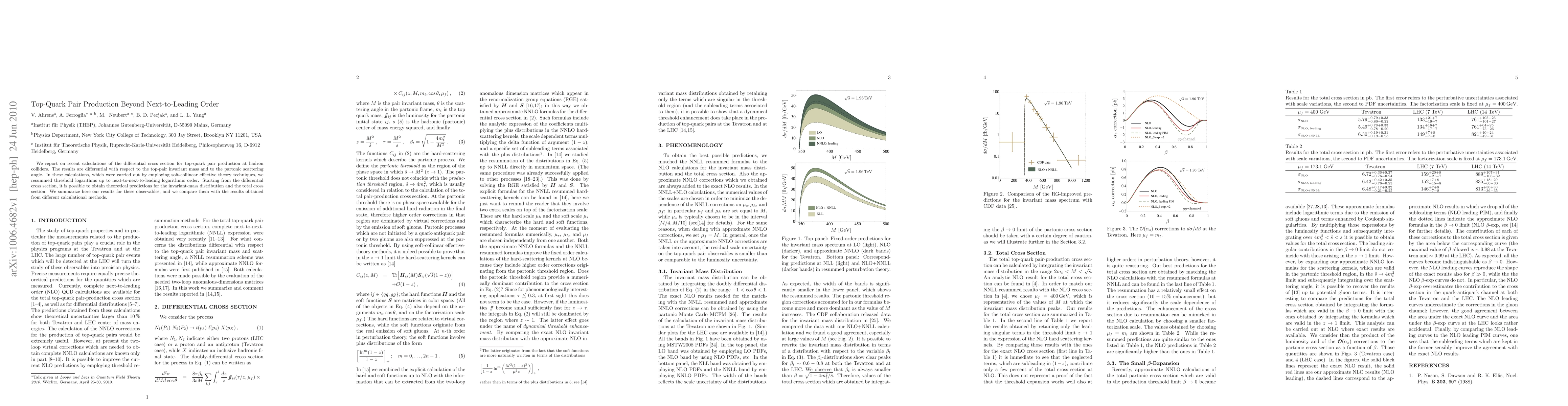 We report on recent calculations of the differential cross section for top-quark pair production at hadron colliders. The results are differential with respect to the top-pair invariant mass and to the partonic scattering angle. In these calculations, which were carried out by employing soft-collinear effective theory techniques, we resummed threshold logarithms up to next-to-next-to-leading logarithmic order. Starting from the differential cross section, it is possible to obtain theoretical predictions for the invariant-mass distribution and the total cross section. We summarize here our results for these observables, and we compare them with the results obtained from different calculational methods.
