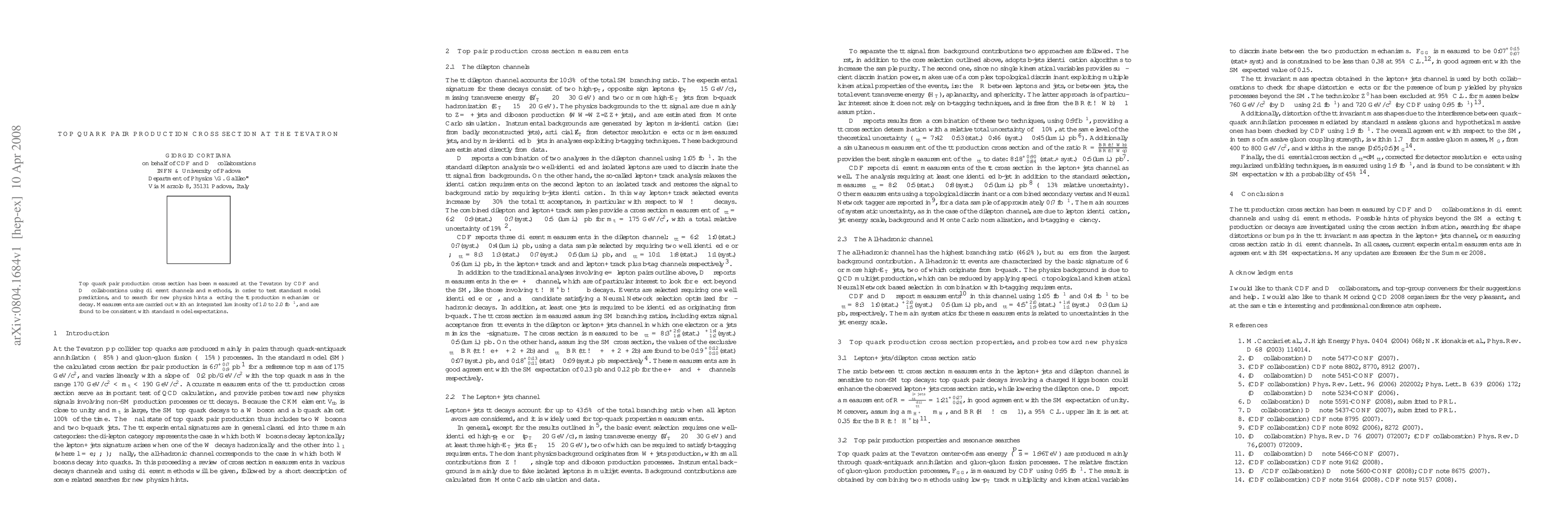 Summary: The CDF and D0 collaborations measured the top quark pair production cross section at the Tevatron, finding results consistent with standard model predictions, with no evidence of new physics affecting the $t\bar t$ production or decay mechanisms.