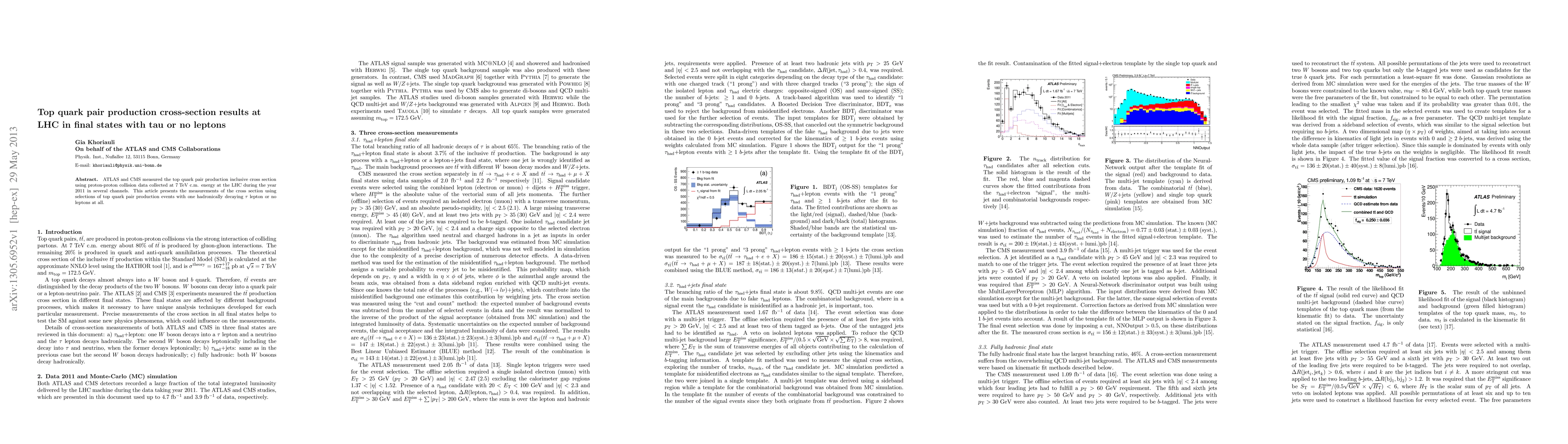 Summary: ATLAS and CMS collaborations measured the top quark pair production cross section at 7 TeV LHC using proton-proton collision data from 2011, focusing on events with one hadronically decaying tau lepton or no leptons. The results provide insights into top quark pair dynamics in these specific final states.