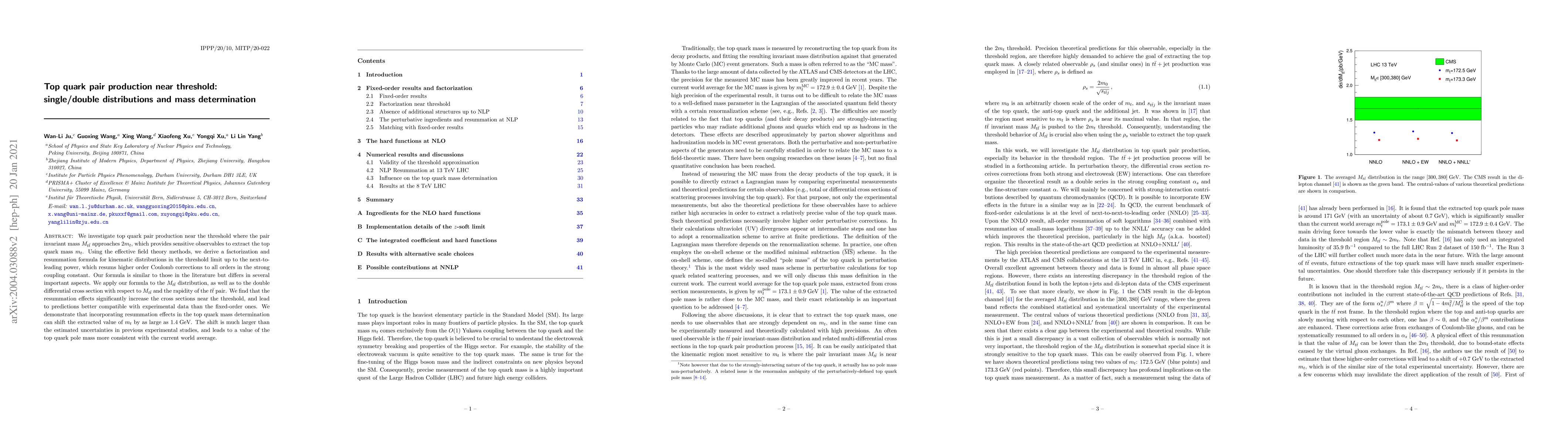 This paper investigates top quark pair production near the threshold using effective field theory methods to derive a resummation formula that accounts for higher order corrections. The results show significant improvements in cross section predictions and a potential 1.4 GeV shift in the extracted top quark mass, aligning better with current world averages.