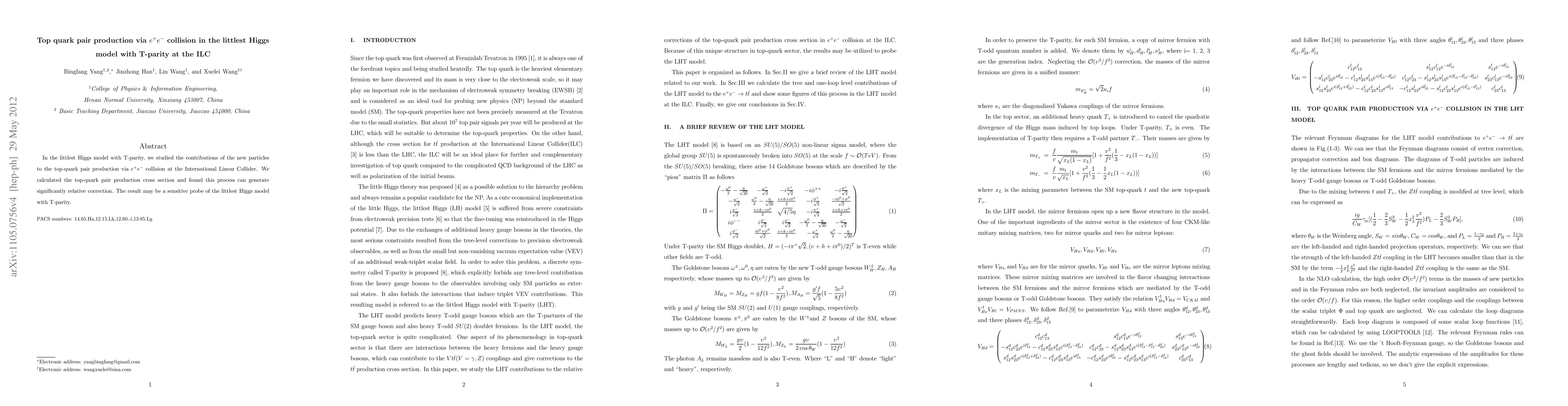 This paper investigates the impact of new particles in the littlest Higgs model with T-parity on top-quark pair production via $e^{+}e^{-}$ collisions at the International Linear Collider. The study reveals significant relative corrections in the top-quark pair production cross section, suggesting this process could serve as a sensitive probe for the model.