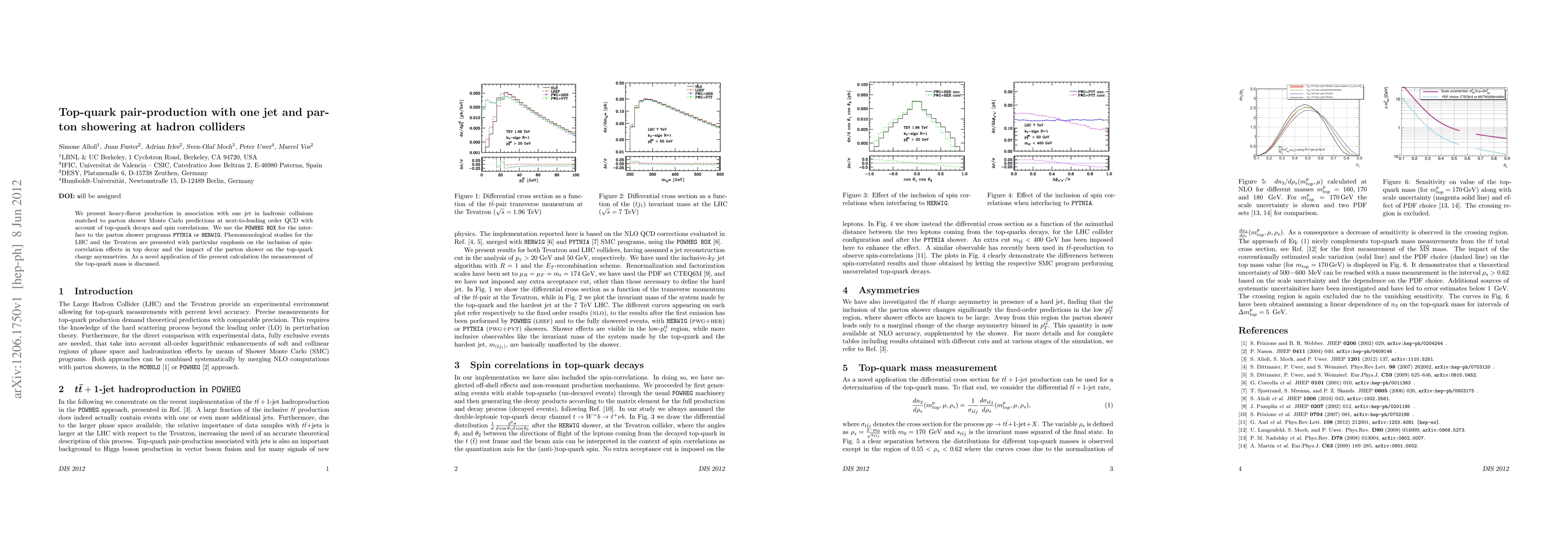 This paper presents a detailed study of top-quark pair production with one jet at hadron colliders, matched with parton shower simulations at next-to-leading order QCD, focusing on top-quark decay spin correlations and their impact on charge asymmetries. The POWHEGBOX interface with PYTHIA or HERWIG is used, and phenomenological implications for the LHC and Tevatron are explored, including the novel measurement of the top-quark mass.