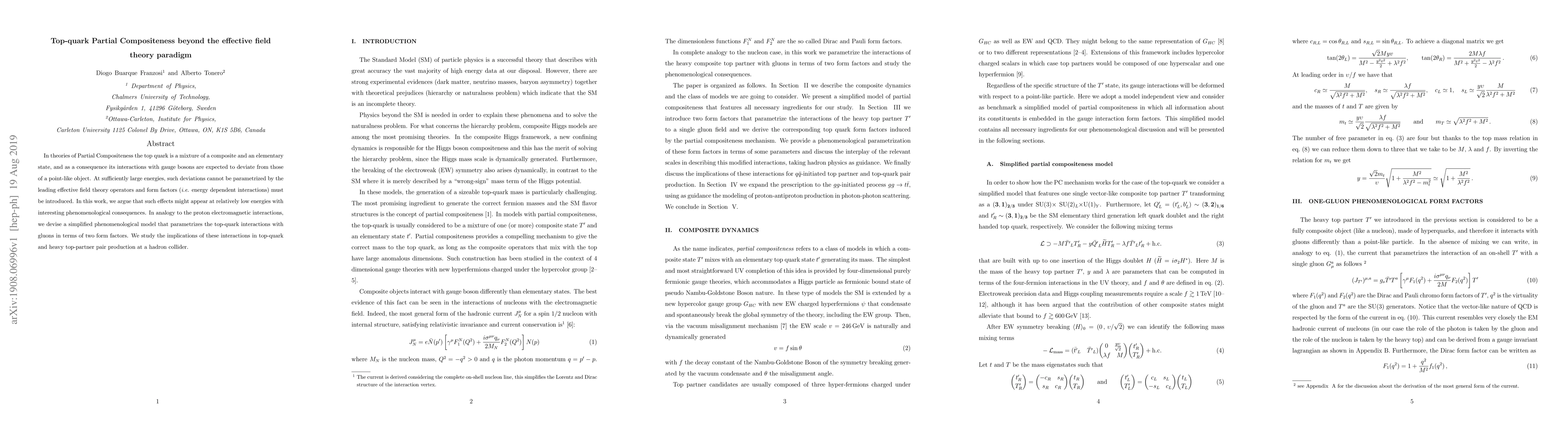 Researchers propose a new model for top-quark interactions that deviates from point-like behavior at low energies, with implications for heavy top-partner production in hadron colliders.