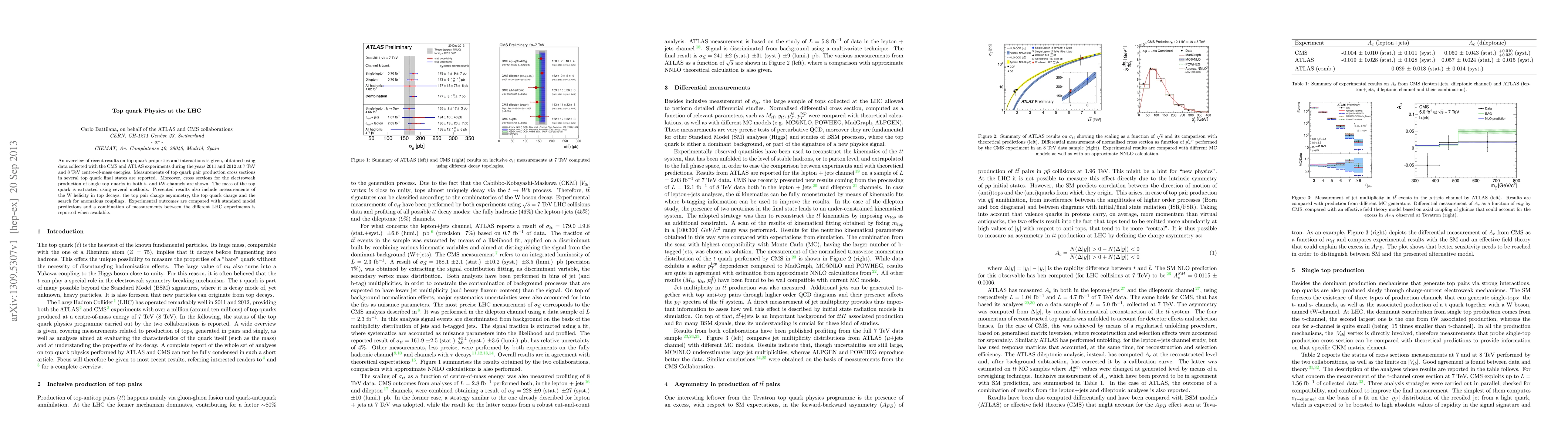 This paper reviews recent findings on top quark properties and interactions from the CMS and ATLAS experiments at the LHC, including measurements of top quark and pair production cross sections, single top quark production, and top quark mass extractions. It also discusses W helicity, top pair charge asymmetry, and searches for anomalous couplings, comparing results to standard model predictions and combining measurements from different LHC experiments.