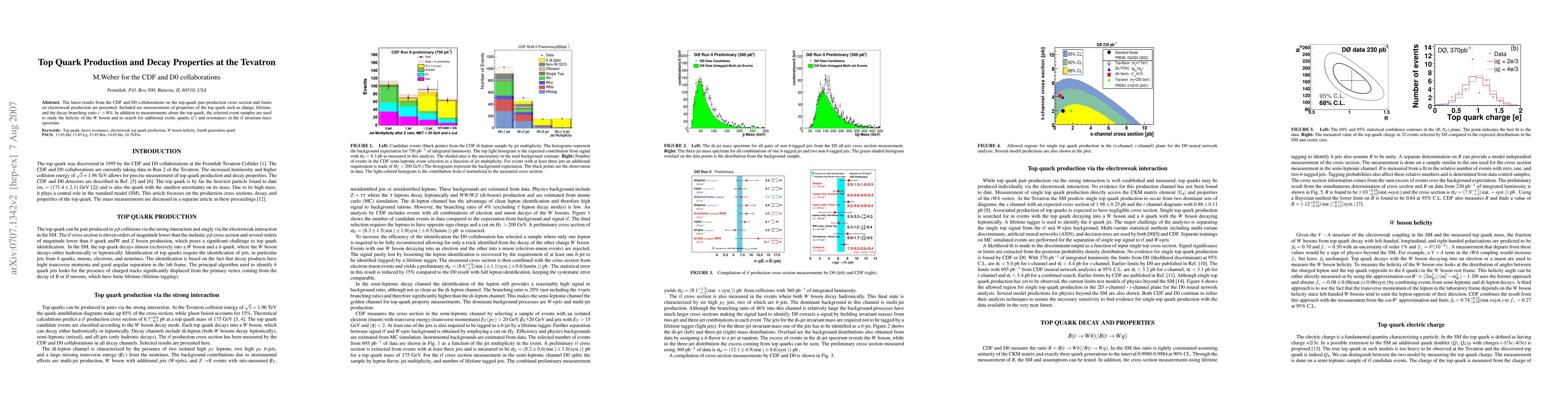 This paper presents the latest findings from the CDF and D0 collaborations on the top-quark pair-production cross section and properties, including charge, lifetime, and decay branching ratio t->Wb. It also explores the helicity of the W boson and searches for exotic quarks and resonances.