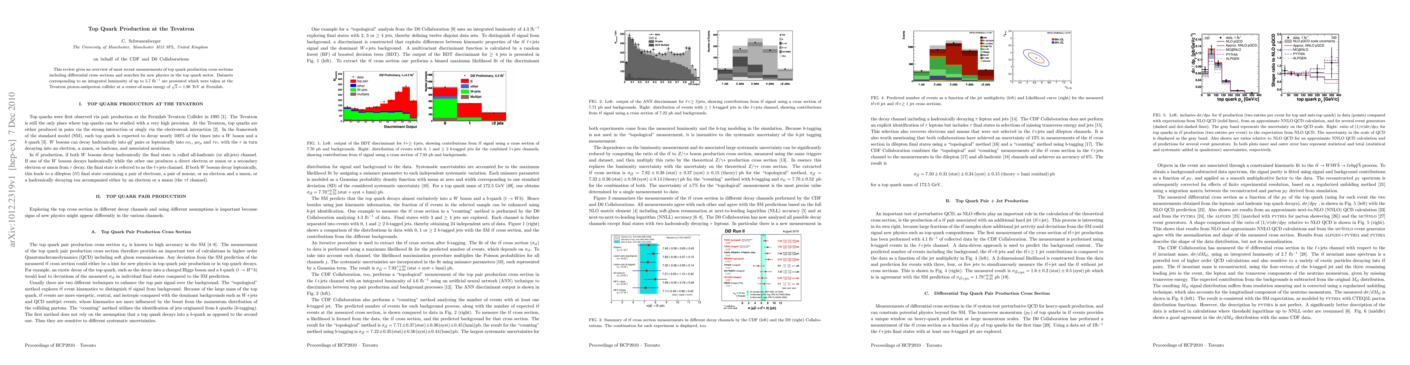 This review gives an overview of most recent measurements of top quark production cross sections including differential cross sections and searches for new physics in the top quark sector. Datasets corresponding to an integrated luminosity of up to 5.7 fb-1 are presented which were taken at the Tevatron proton-antiproton collider at a center-of-mass energy of sqrt(s)=1.96 TeV at Fermilab.