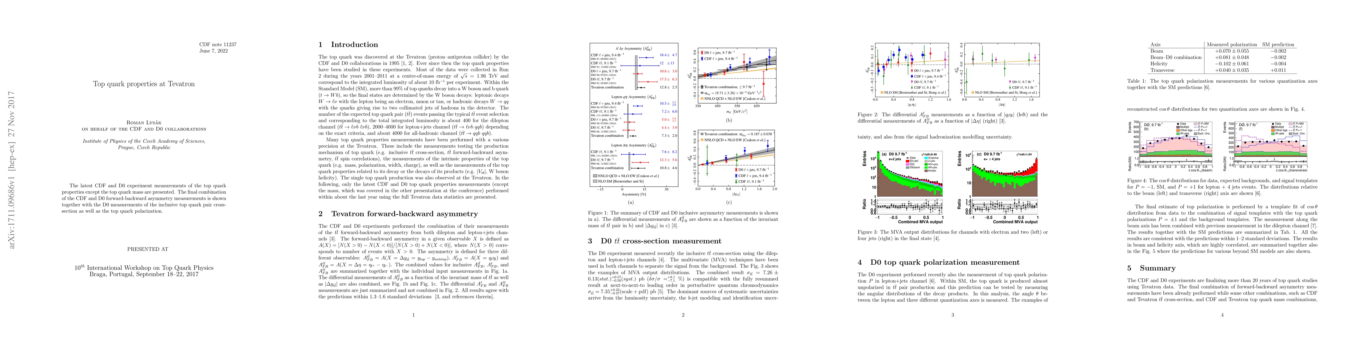 Summary: This paper presents the latest findings from CDF and D0 experiments on top quark properties at Tevatron, focusing on forward-backward asymmetry, inclusive top quark pair cross-section, and top quark polarization, excluding mass measurements. The results are based on a final combination of data from both experiments.