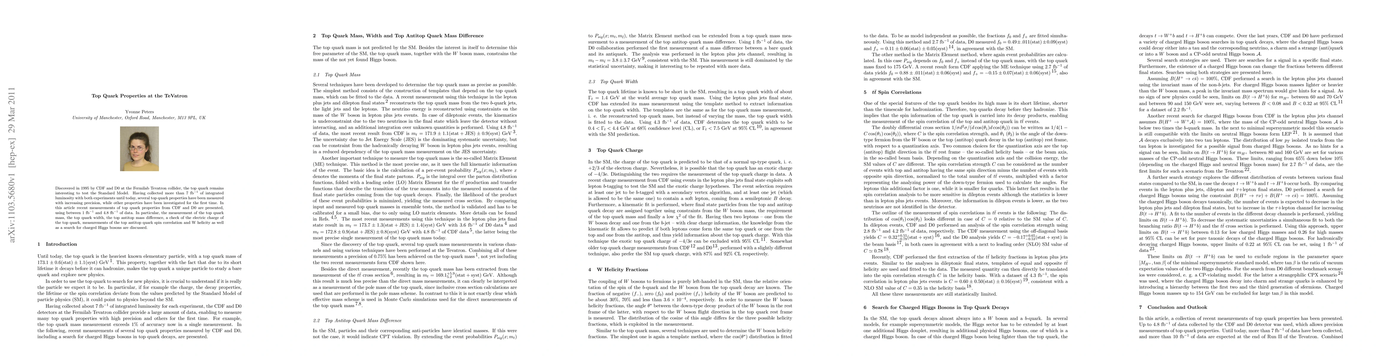 This paper presents recent measurements of top quark properties from CDF and D0 experiments at the Tevatron, including precise determinations of the top quark mass, width, and spin correlations, alongside searches for charged Higgs bosons. These results contribute to the ongoing investigation of the top quark within the Standard Model framework.