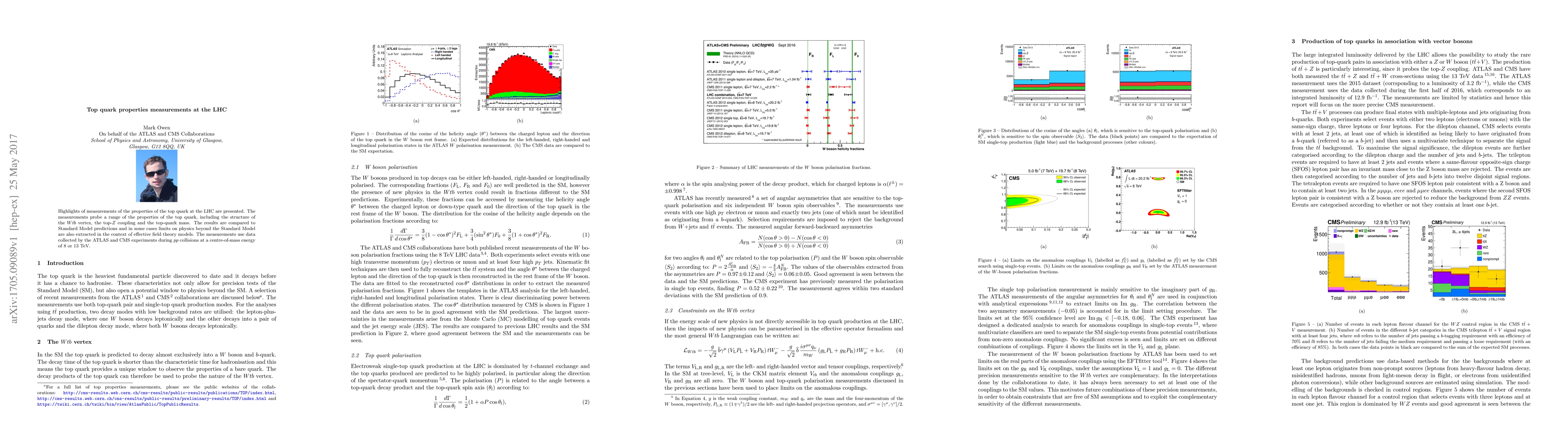 This paper presents key measurements of the top quark's properties at the LHC, including the $Wtb$ vertex structure, top-Z coupling, and top-quark mass, using data from the ATLAS and CMS experiments. Results are compared to Standard Model predictions and provide limits on physics beyond the Standard Model.