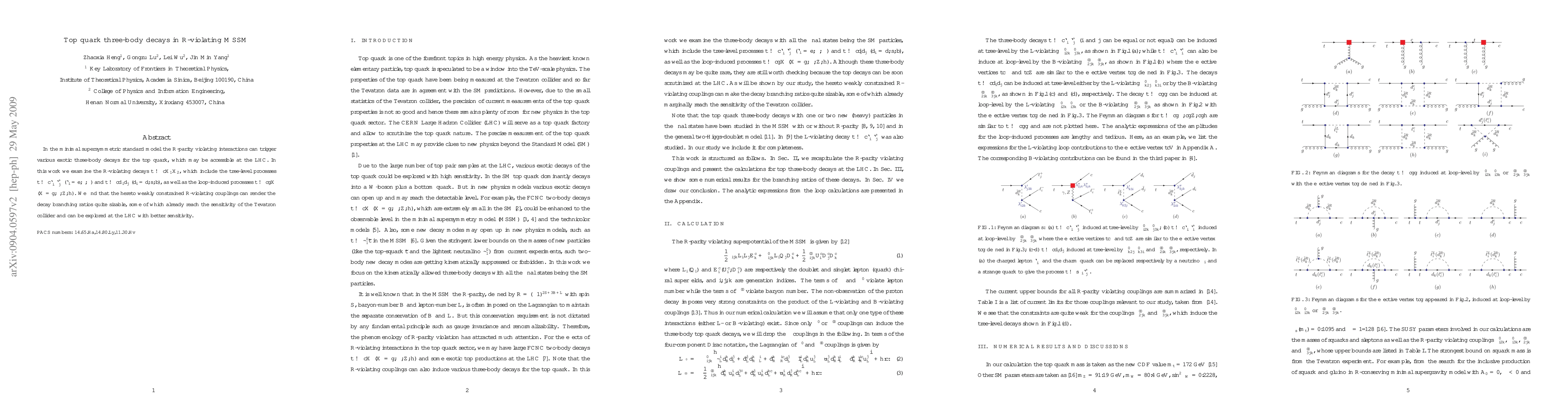 This paper investigates exotic three-body decays of the top quark in the R-parity violating minimal supersymmetric standard model, focusing on the processes t->c l^-_i l^+_j and t->c d_i \bar{d}_j, as well as loop-induced decays. The study finds that R-violating couplings can lead to sizable branching ratios, potentially observable at the LHC.