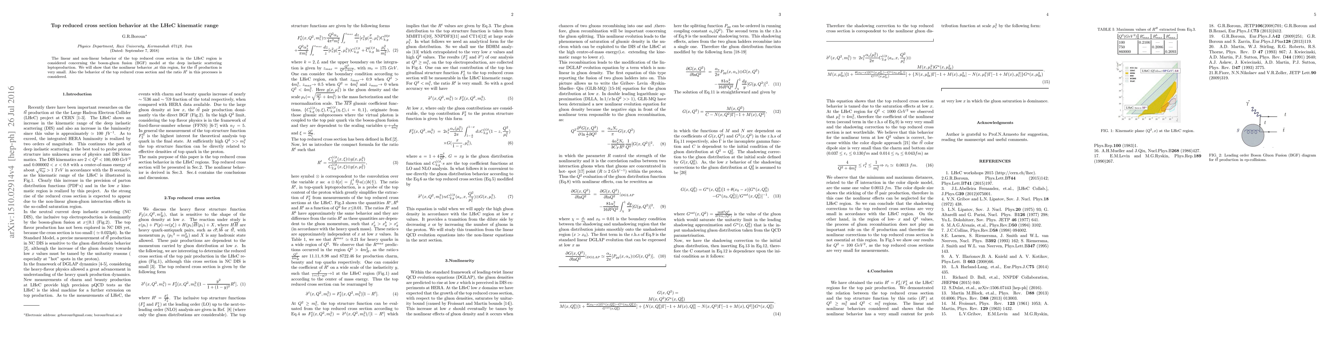The linear and non-linear behavior of the top reduced cross section in the LHeC region is considered concerning the boson-gluon fusion (BGF) model at the deep inelastic scattering leptoproduction. We will show that the nonlinear behavior, at this region, for the $t\overline{t}$ production is very small. Also the behavior of the top reduced cross section and the ratio $R^{t}$ in this processes is considered.