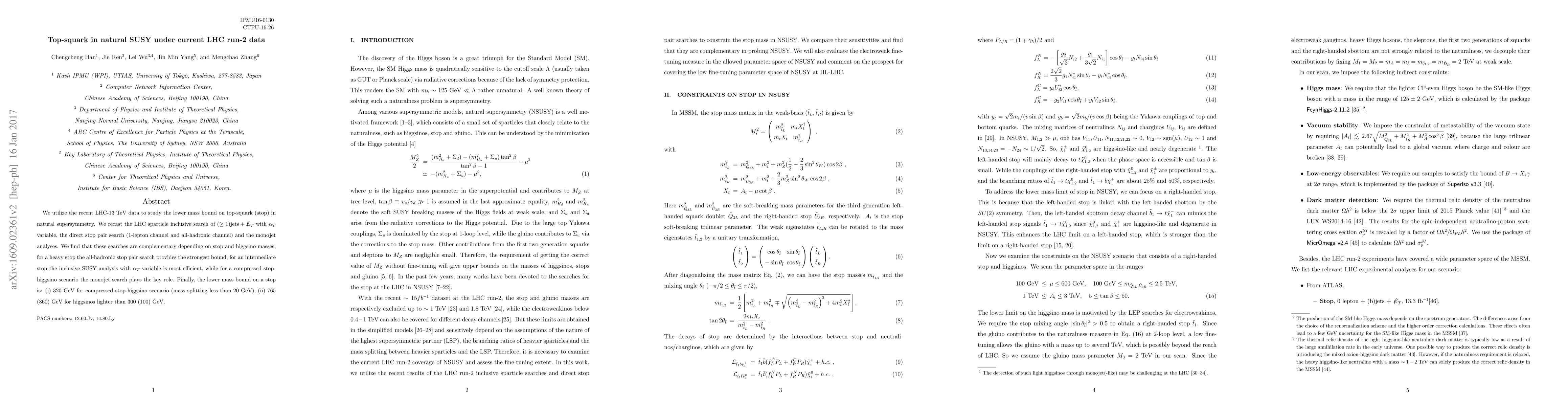 This study uses LHC-13 TeV data to determine the lower mass limits for the top-squark (stop) in natural supersymmetry, finding that different search strategies are most effective depending on stop and higgsino masses. The lower mass bound on a stop is 320 GeV for scenarios with small mass splitting and 765-860 GeV for lighter higgsinos.