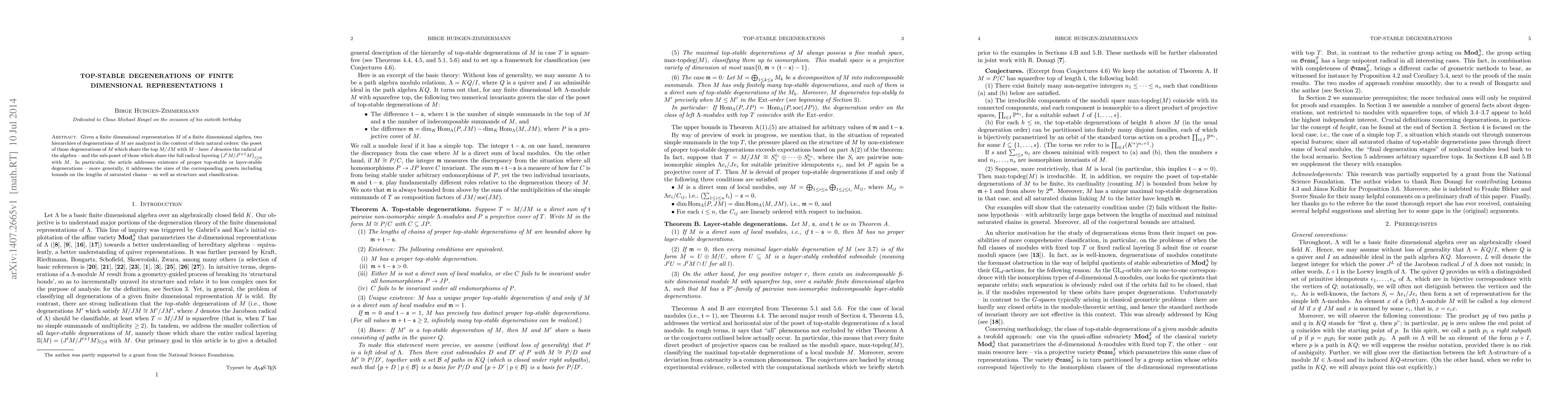 Given a finite dimensional representation $M$ of a finite dimensional algebra, two hierarchies of degenerations of $M$ are analyzed in the context of their natural orders: the poset of those degenerations of $M$ which share the top $M/JM$ with $M$ - here $J$ denotes the radical of the algebra - and the sub-poset of those which share the full radical layering $\bigl(J^lM/J^{l+1}M\bigr)_{l \ge 0}$ with $M$. In particular, the article addresses existence of proper top-stable or layer-stable degenerations - more generally, it addresses the sizes of the corresponding posets including bounds on the lengths of saturated chains - as well as structure and classification.