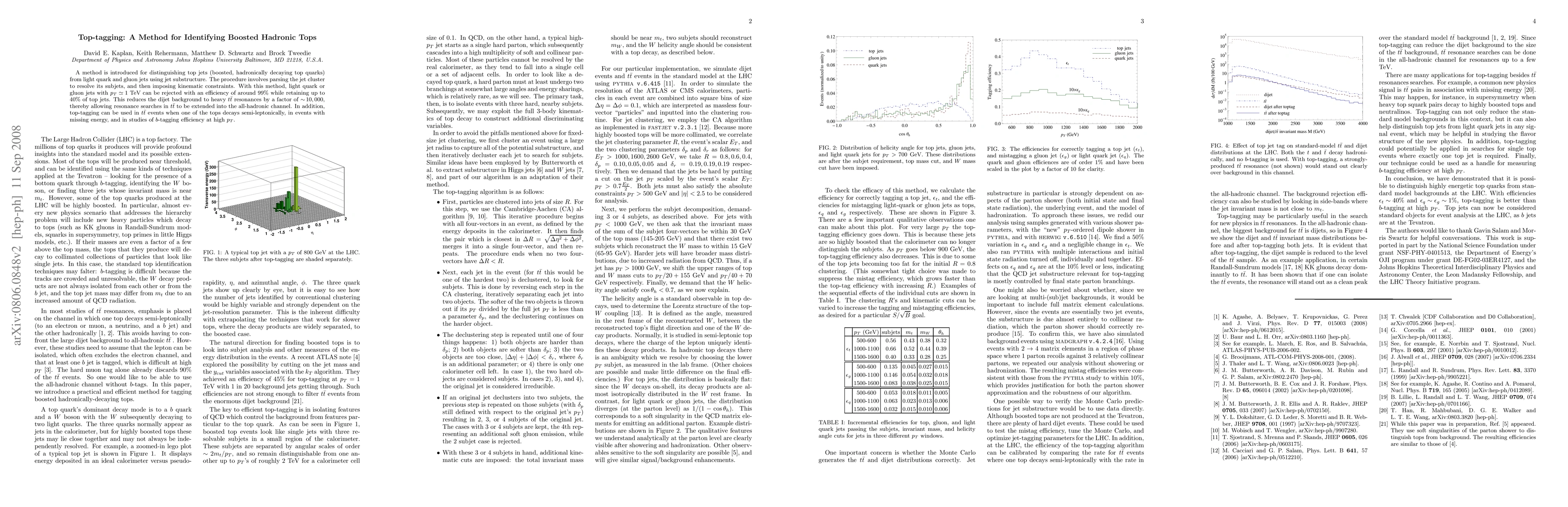 This paper introduces a top-tagging method for identifying boosted hadronic top quarks using jet substructure and kinematic constraints. The technique achieves high efficiency in distinguishing top jets from light quark and gluon jets, significantly reducing background noise for t-tbar resonance searches.