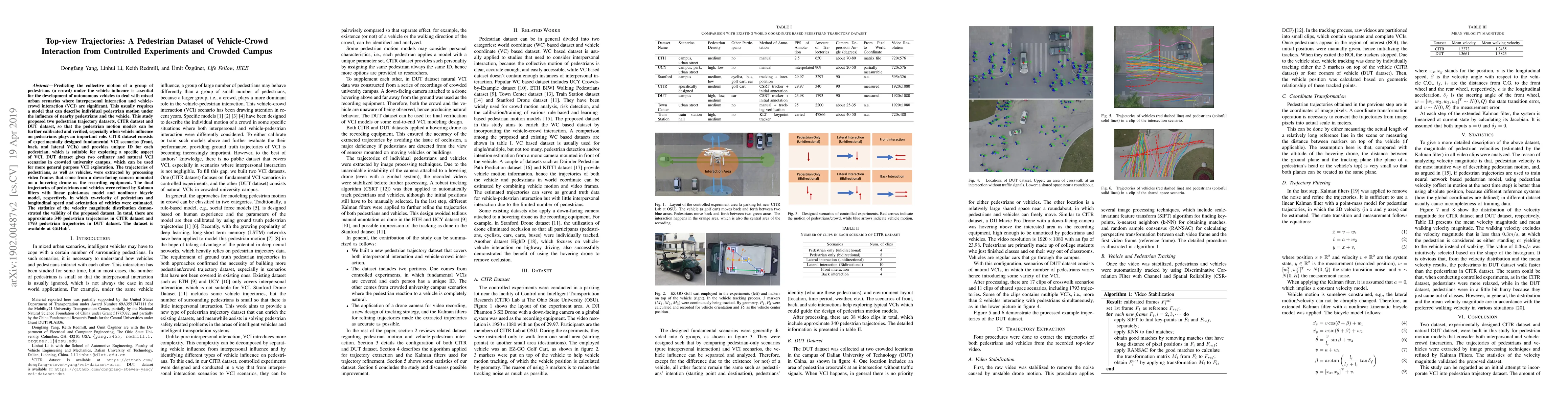 This paper introduces two pedestrian trajectory datasets, CITR and DUT, to model and verify pedestrian motion under vehicle influence, crucial for autonomous vehicle development. The datasets capture detailed interactions from controlled experiments and natural campus scenarios, providing refined trajectories via Kalman filters and available for further research.