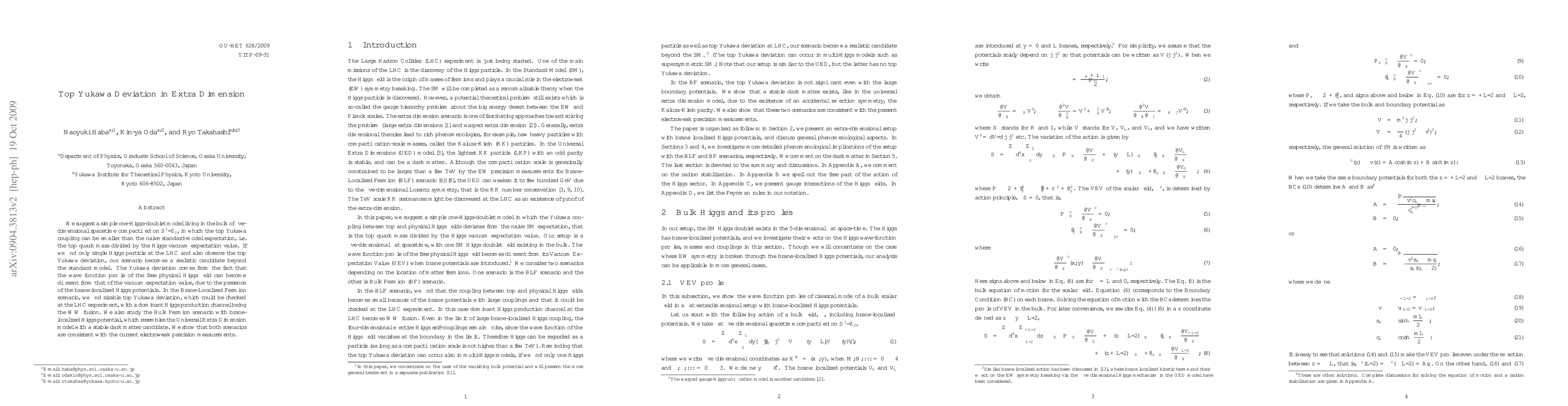 We suggest a simple one-Higgs-doublet model living in the bulk of five-dimensional spacetime compactified on $S^1/Z_2$, in which the top Yukawa coupling can be smaller than the naive standard-model expectation, i.e. the top quark mass divided by the Higgs vacuum expectation value. If we find only single Higgs particle at the LHC and also observe the top Yukawa deviation, our scenario becomes a realistic candidate beyond the standard model. The Yukawa deviation comes from the fact that the wave function profile of the free physical Higgs field can become different from that of the vacuum expectation value, due to the presence of the brane-localized Higgs potentials. In the Brane-Localized Fermion scenario, we find sizable top Yukawa deviation, which could be checked at the LHC experiment, with a dominant Higgs production channel being the $WW$ fusion. We also study the Bulk Fermion scenario with brane-localized Higgs potential, which resembles the Universal Extra Dimension model with a stable dark matter candidate. We show that both scenarios are consistent with the current electroweak precision measurements.