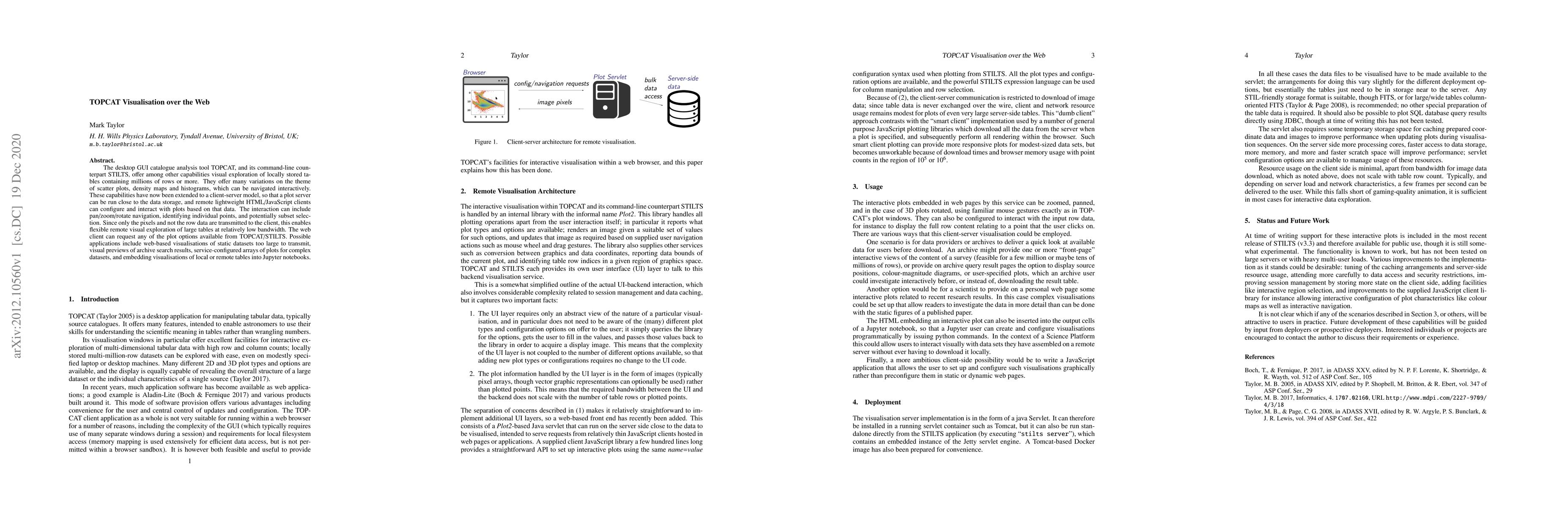 The paper describes the extension of TOPCAT's visual exploration capabilities to a web-based client-server model, enabling remote interaction with large datasets through lightweight HTML/JavaScript clients. This approach allows for flexible, low-bandwidth remote visual exploration and potential applications include web-based visualizations and embedding in Jupyter notebooks.