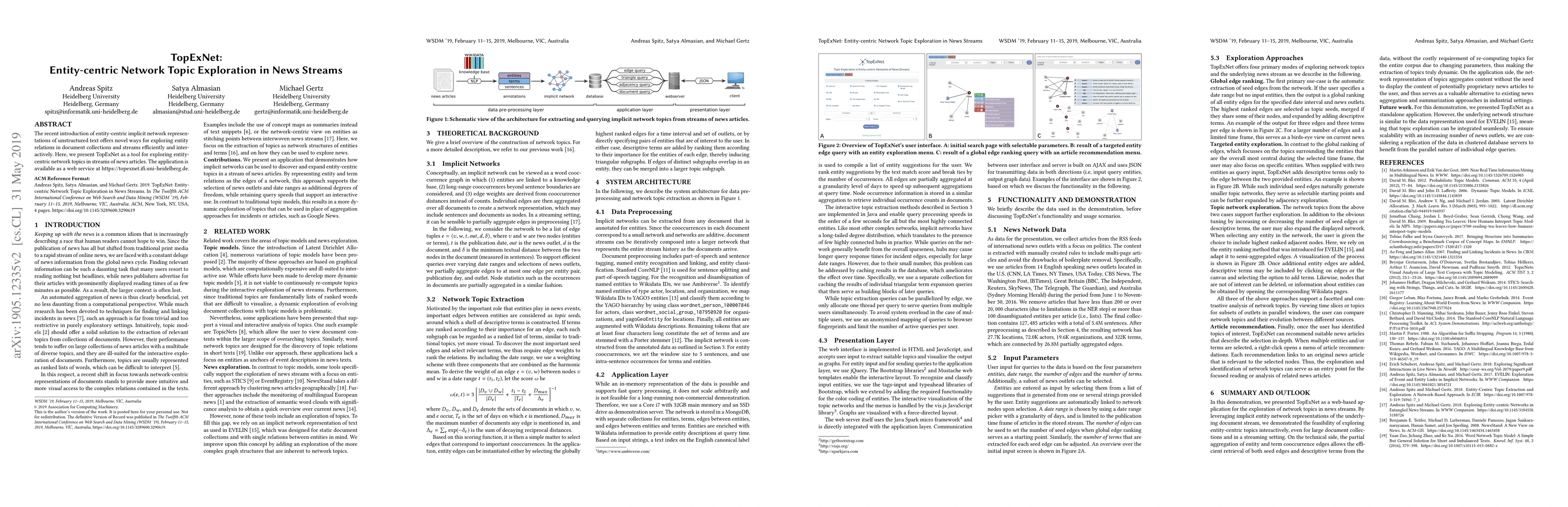 TopExNet is a web service designed for exploring entity-centric network topics in news streams, leveraging implicit network representations of unstructured text to efficiently and interactively analyze entity relations. It is accessible at https://topexnet.ifi.uni-heidelberg.de/.