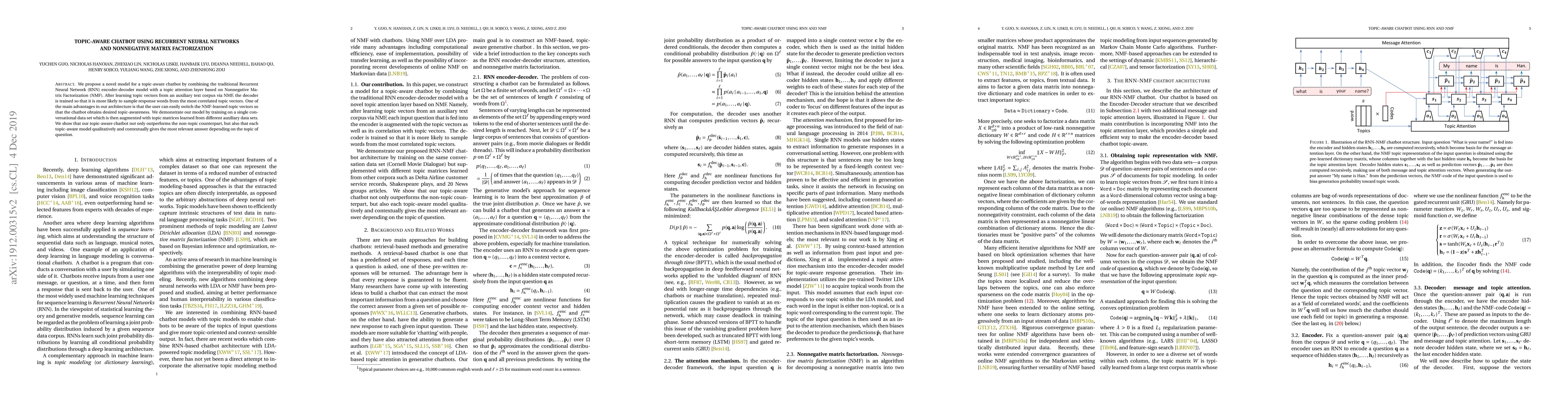 The paper proposes a topic-aware chatbot model that integrates Recurrent Neural Networks (RNN) with Nonnegative Matrix Factorization (NMF) to enhance topic relevance in responses. The NMF-derived topic vectors enable the chatbot to provide contextually appropriate answers based on the topic of the question.