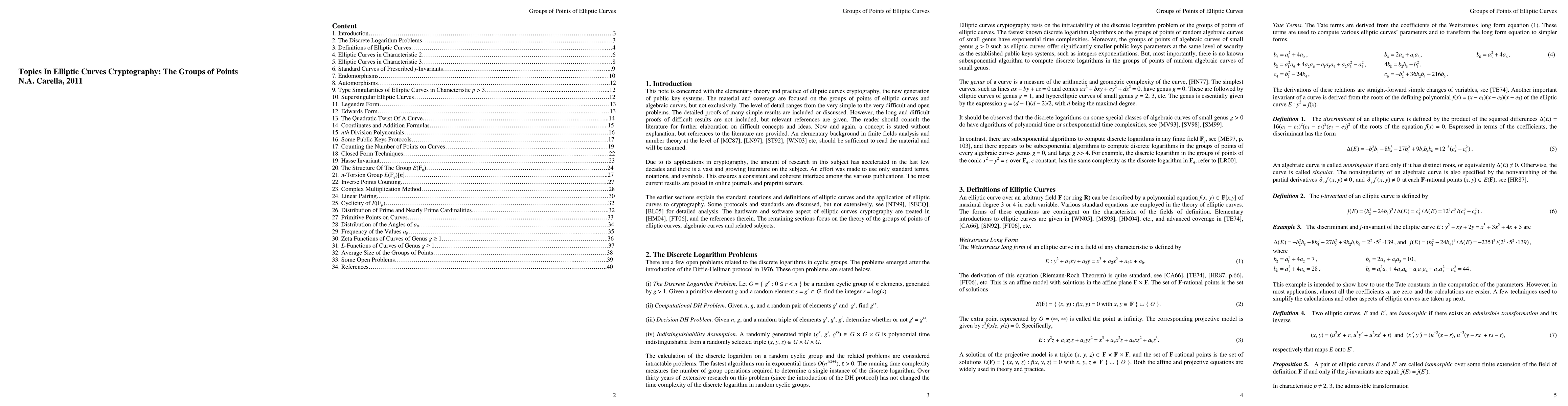 This paper provides an introductory overview of elliptic curves over finite fields, focusing on the groups of points and their application in elliptic curve cryptography. It covers the fundamental theory and practical aspects of these groups, essential for understanding modern public key systems.