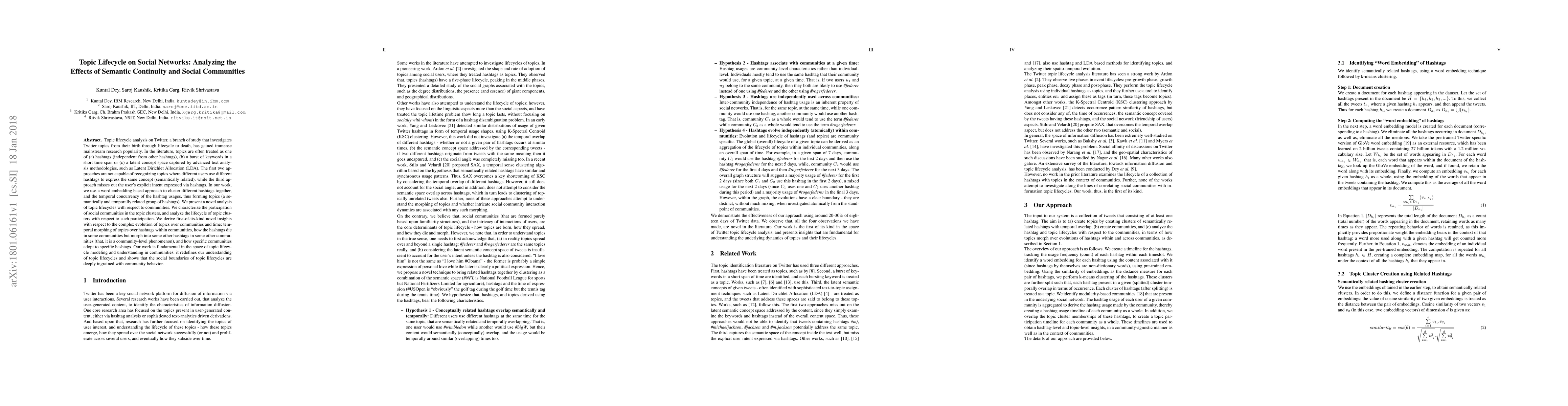 This paper analyzes Twitter topic lifecycles using a word embedding approach to cluster semantically related hashtags, revealing how topics evolve over time and within social communities. It uncovers novel insights into the community-level dynamics of hashtag usage and the morphing of topics across different communities.
