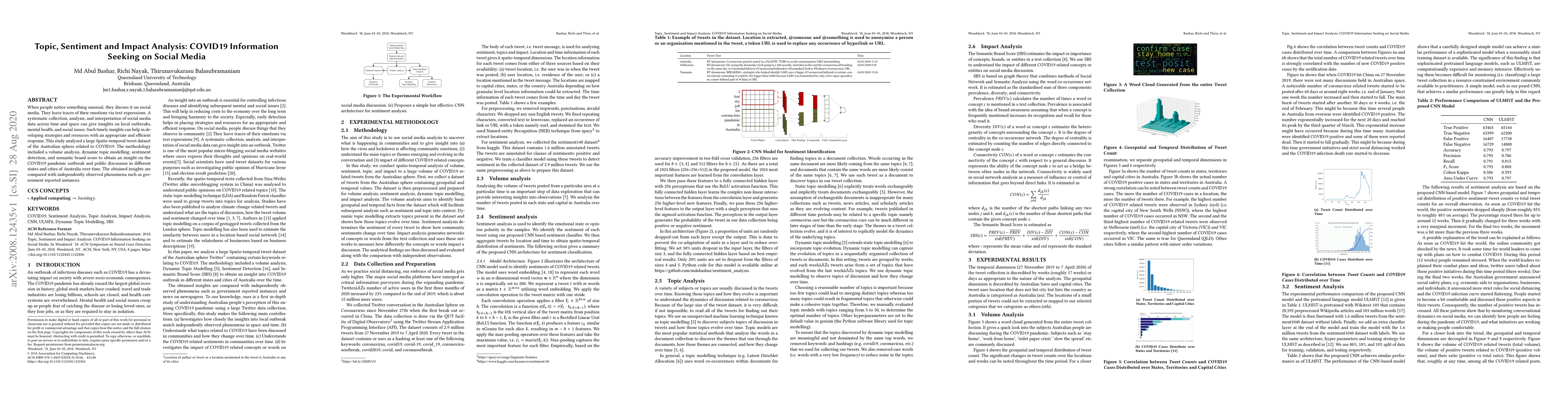 When people notice something unusual, they discuss it on social media. They leave traces of their emotions via text expressions. A systematic collection, analysis, and interpretation of social media data across time and space can give insights on local outbreaks, mental health, and social issues. Such timely insights can help in developing strategies and resources with an appropriate and efficient response. This study analysed a large Spatio-temporal tweet dataset of the Australian sphere related to COVID19. The methodology included a volume analysis, dynamic topic modelling, sentiment detection, and semantic brand score to obtain an insight on the COVID19 pandemic outbreak and public discussion in different states and cities of Australia over time. The obtained insights are compared with independently observed phenomena such as government reported instances.
