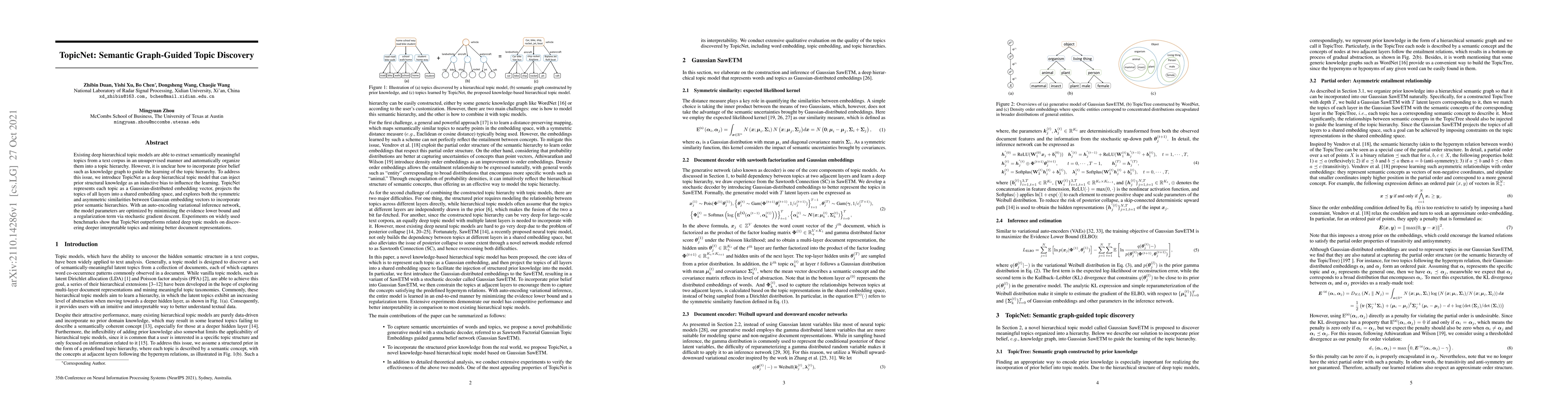 TopicNet introduces a deep hierarchical topic model that leverages knowledge graphs to guide the discovery of semantically meaningful topics, optimizing topic embeddings to better reflect prior semantic hierarchies and achieving superior performance in interpretability and document representation.
