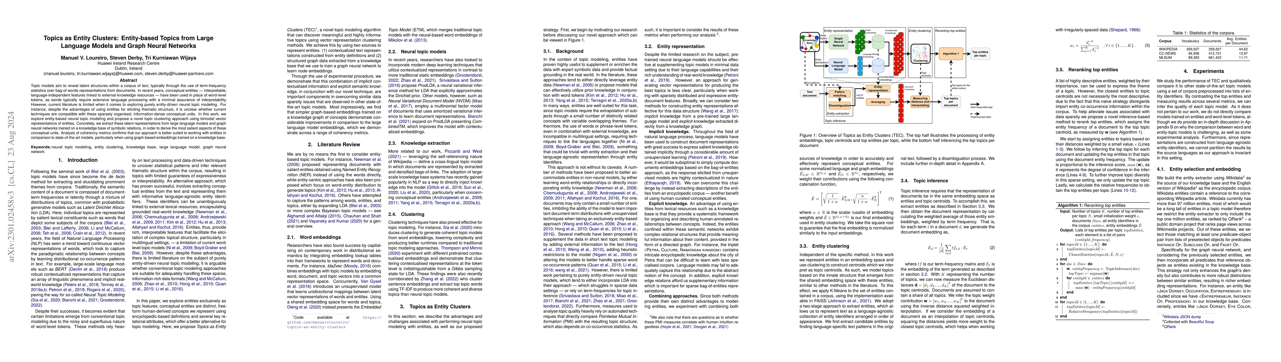 This paper proposes a novel cluster-based topic modeling approach using conceptual entities extracted from language models and graph neural networks. The method outperforms existing models in coherency, leveraging explicit knowledge from graph embeddings for better interpretability.