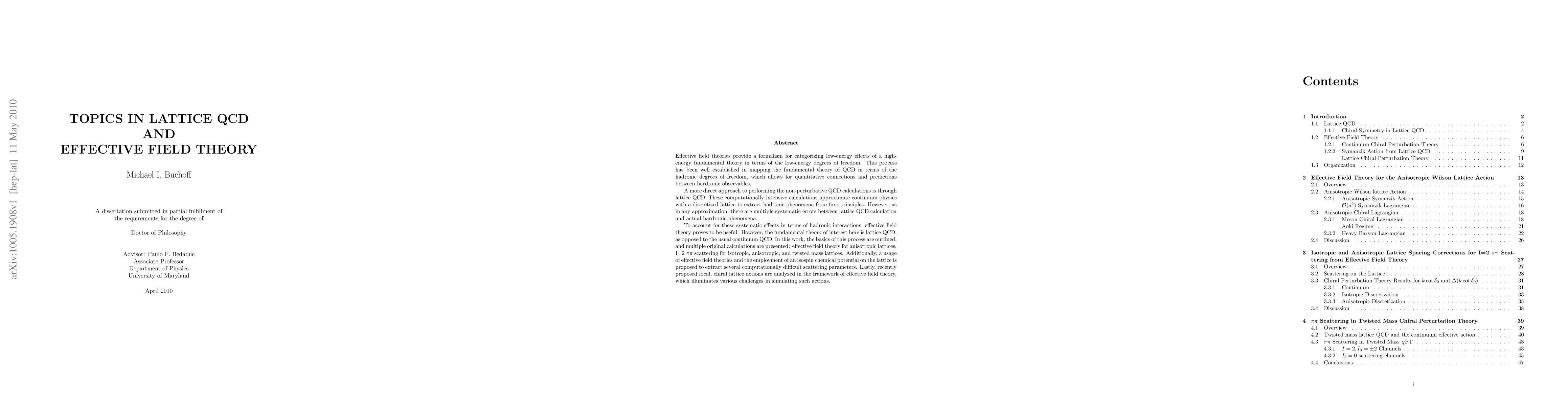 This paper outlines the integration of effective field theory with lattice QCD to address systematic errors and enhance non-perturbative QCD calculations. It presents original calculations on anisotropic lattices and explores the usage of isospin chemical potentials for extracting difficult scattering parameters, alongside analyzing recently proposed chiral lattice actions.