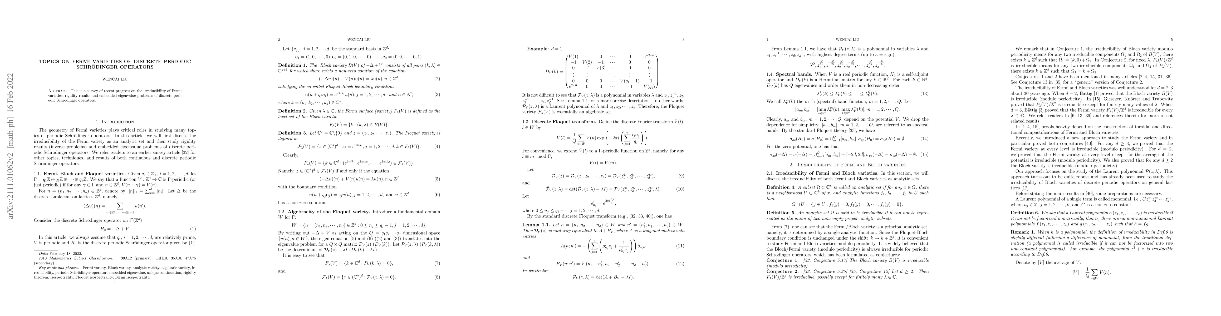The paper advances the theoretical framework for understanding the structure of Fermi varieties and embedded eigenvalues in discrete and continuous periodic Schrödinger operators, combining algebraic geometry with spectral theory.