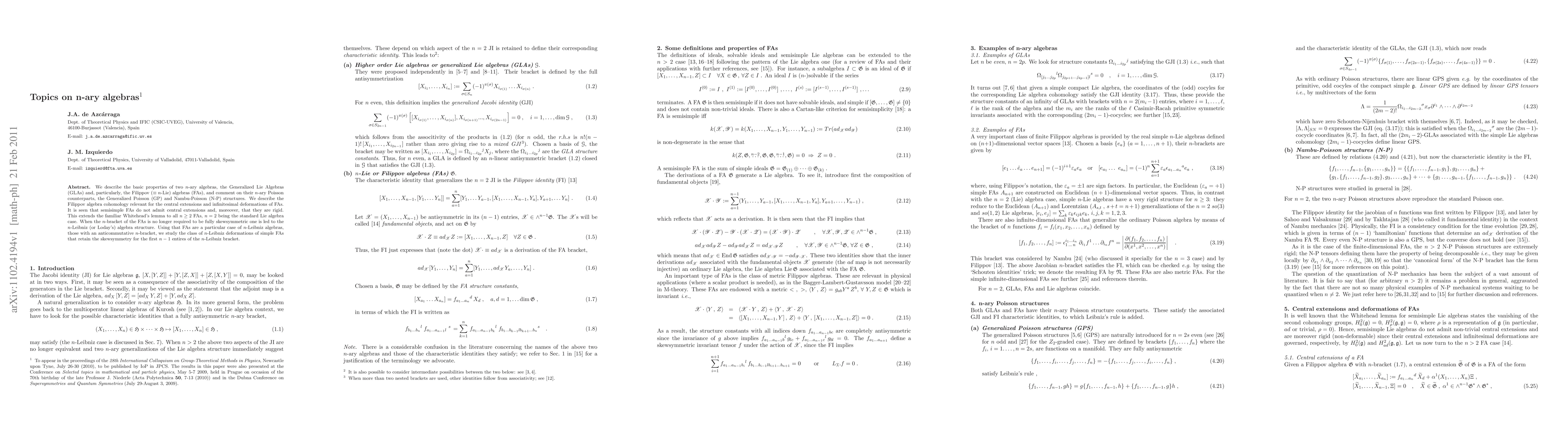 This paper explores the properties and cohomology of Generalized Lie Algebras and Filippov algebras, highlighting their n-ary Poisson counterparts. It reveals that semisimple Filippov algebras do not admit central extensions and are rigid, extending Whitehead's lemma to all n-ary cases. The study also examines n-Leibniz algebras and deformations of simple Filippov algebras that preserve skewsymmetry.