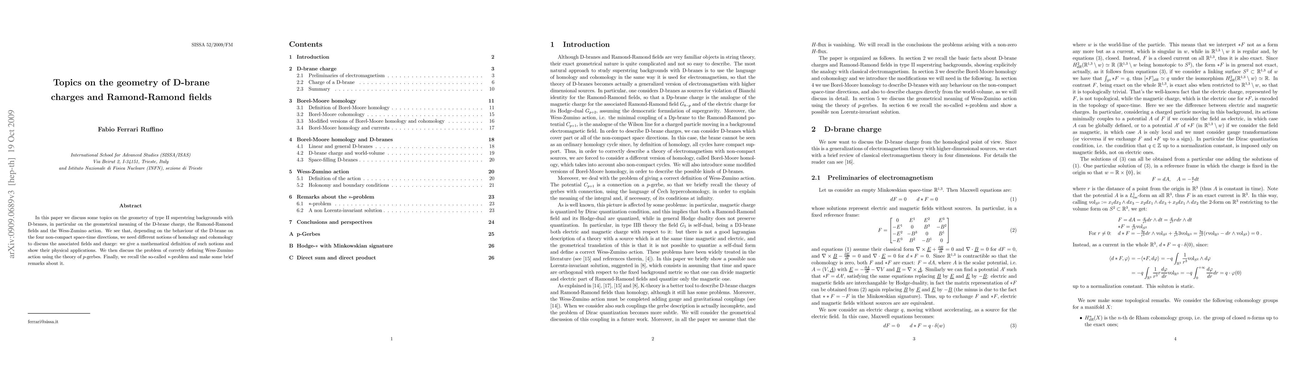This paper explores the geometry of type II superstring backgrounds with D-branes, focusing on the D-brane charge and Ramond-Ramond fields. It introduces mathematical definitions for homology and cohomology to describe these concepts and discusses the Wess-Zumino action using p-gerbes, alongside a brief remark on the *-problem.