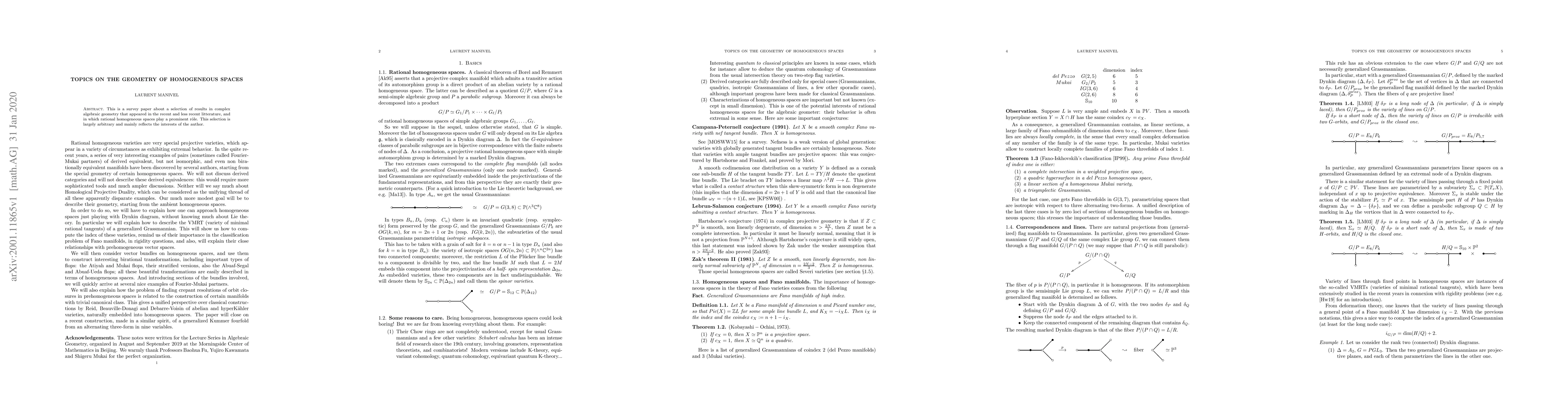 The paper synthesizes and clarifies various advanced concepts in complex algebraic geometry, providing a comprehensive overview of results related to homogeneous spaces and their geometric properties.