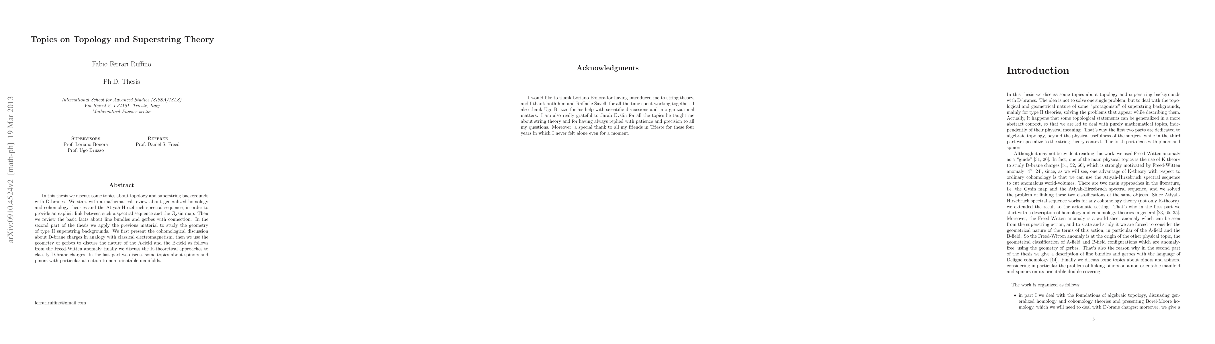 This thesis explores the intersection of topology and superstring theory, focusing on D-branes and their properties, with implications for understanding string background geometries and classification methods.