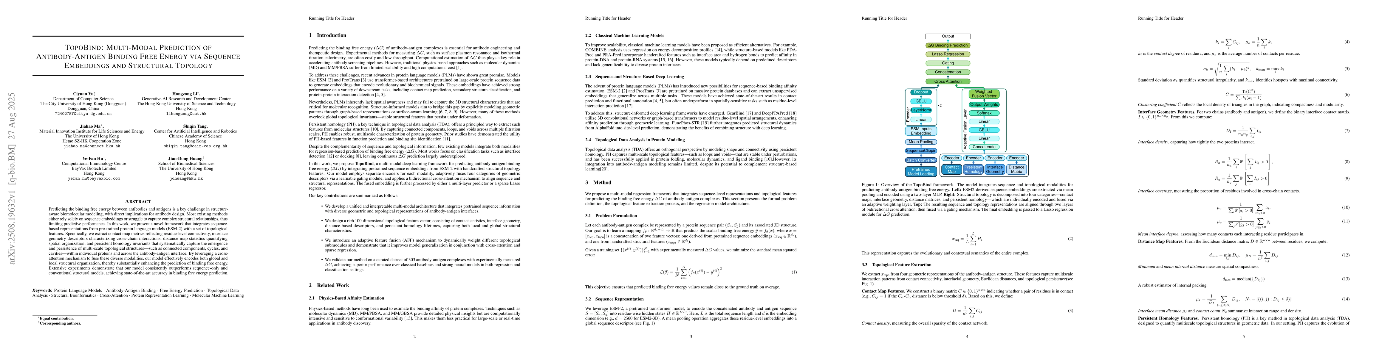 Predicting the binding free energy between antibodies and antigens is a key challenge in structure-aware biomolecular modeling, with direct implications for antibody design. Most existing methods either rely solely on sequence embeddings or struggle to capture complex structural relationships, thus limiting predictive performance. In this work, we present a novel framework that integrates sequence-based representations from pre-trained protein language models (ESM-2) with a set of topological features. Specifically, we extract contact map metrics reflecting residue-level connectivity, interface geometry descriptors characterizing cross-chain interactions, distance map statistics quantifying spatial organization, and persistent homology invariants that systematically capture the emergence and persistence of multi-scale topological structures - such as connected components, cycles, and cavities - within individual proteins and across the antibody-antigen interface. By leveraging a cross-attention mechanism to fuse these diverse modalities, our model effectively encodes both global and local structural organization, thereby substantially enhancing the prediction of binding free energy. Extensive experiments demonstrate that our model consistently outperforms sequence-only and conventional structural models, achieving state-of-the-art accuracy in binding free energy prediction.