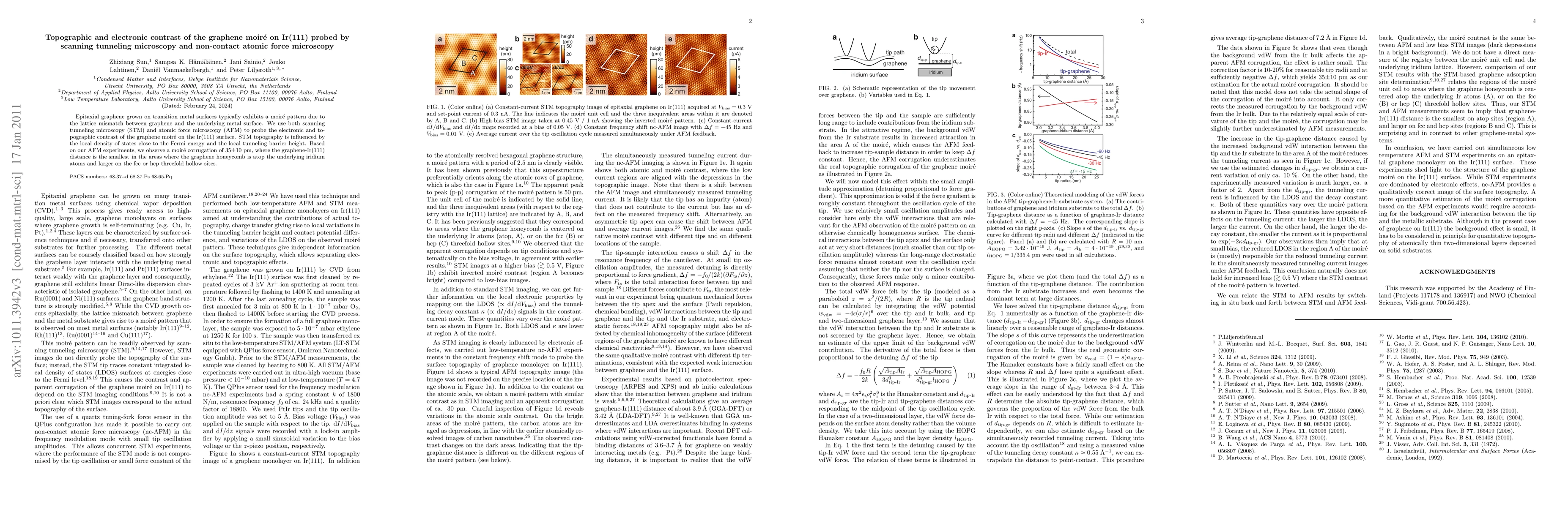 This study employs scanning tunneling microscopy (STM) and atomic force microscopy (AFM) to investigate the topographic and electronic contrasts of graphene moiré patterns on Ir(111). The research reveals a moiré corrugation of 35±10 pm, with the smallest graphene-Ir(111) distance in atop graphene areas compared to threefold hollow sites.