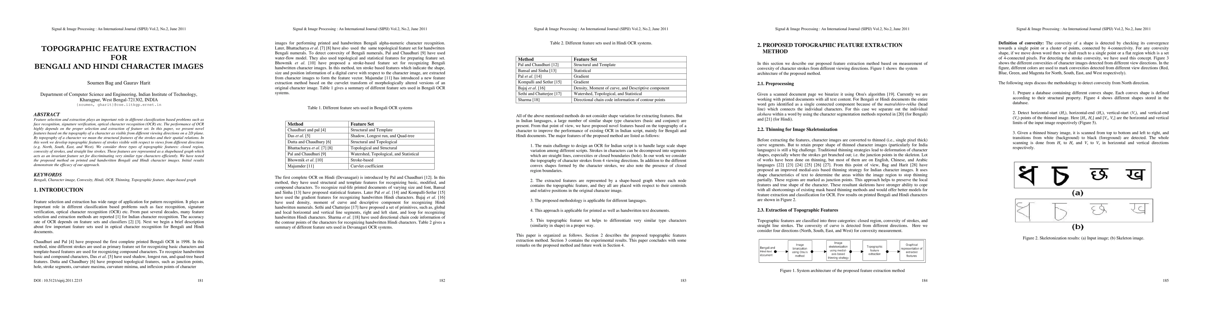 This paper introduces novel topographic features based on the structural strokes and spatial relations of Bengali and Hindi characters, represented as a shape-based graph for robust OCR. Initial tests show promising results in distinguishing similar characters efficiently.