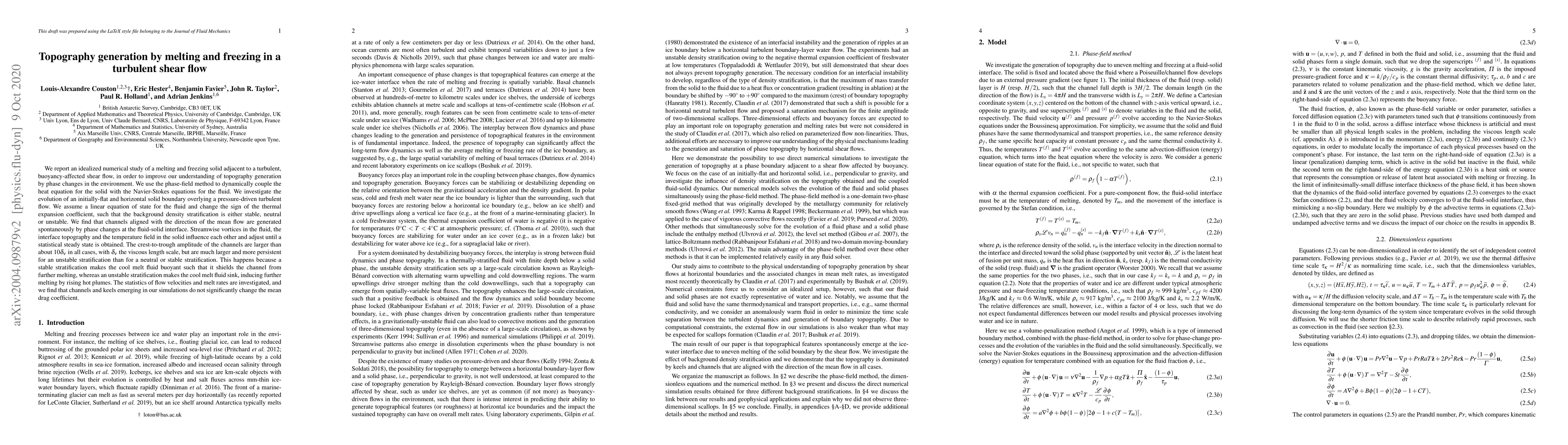 Research simulates melting and freezing in turbulent flows to create channels, finding that channel depth is larger for unstable stratifications and does not significantly impact drag coefficients.