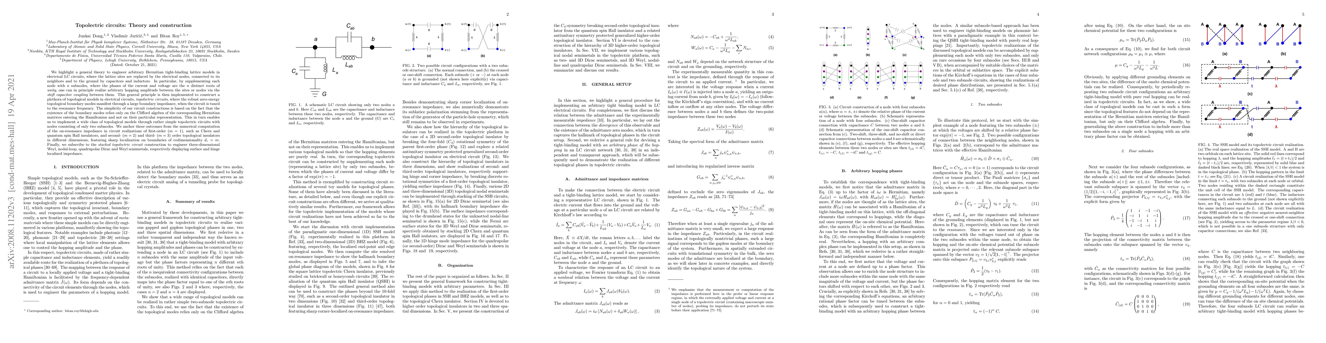 This research introduces 'topolectric circuits', a theory and method to engineer various topological models in electrical circuits using LC elements. By adding subnodes with specific phase relationships, arbitrary hopping amplitudes are achieved, enabling the realization of multiple topological phases, including Chern, quantum spin Hall, and higher-order insulators, as well as semimetals. These topolectric circuits offer a simple, accessible way to study topological phenomena through distinct boundary impedances.