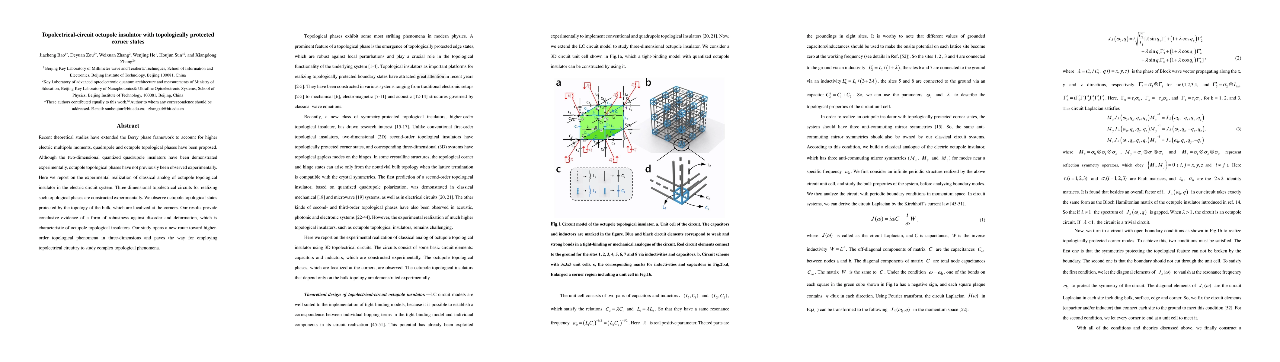 This paper reports the experimental realization of a three-dimensional topolectrical circuit demonstrating an octupole topological insulator, showcasing topologically protected corner states. The study provides evidence for robustness against disorder, opening new avenues for higher-order topological phenomena in three-dimensional circuits.