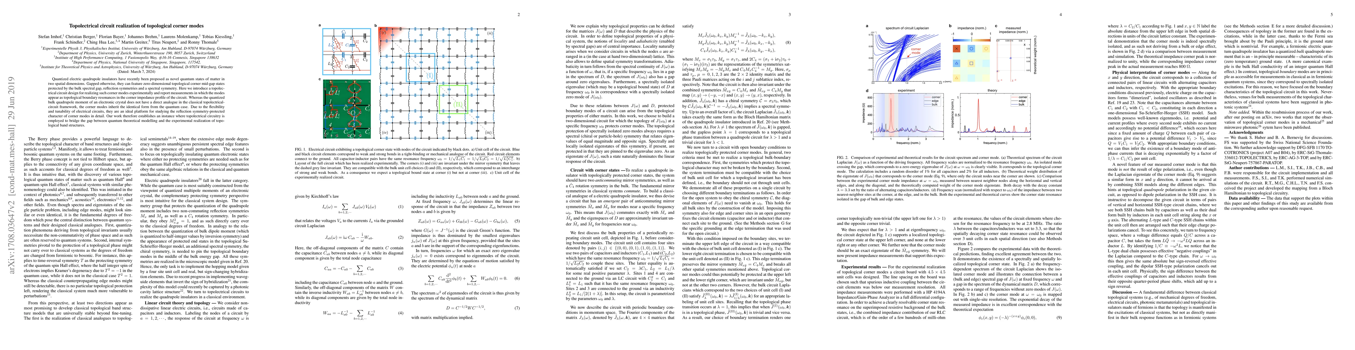 This paper presents a topolectrical circuit design to experimentally realize quantized electric quadrupole insulators, demonstrating topological corner modes as boundary resonances. The study highlights the circuit's ability to mimic the quantum topological properties, bridging theoretical modeling and experimental validation of topological band structures.