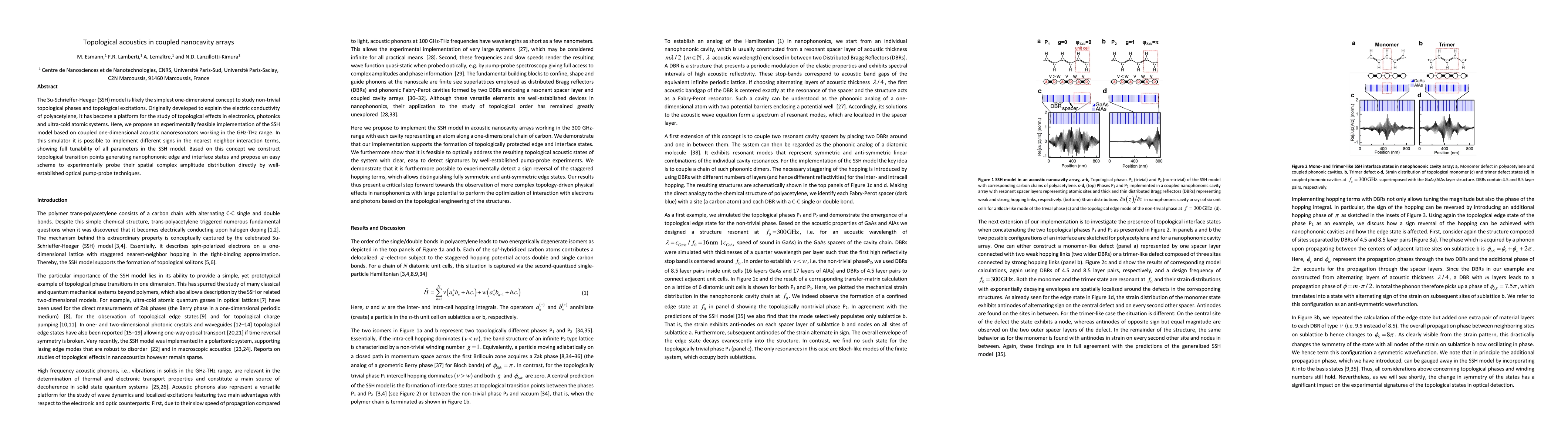 The paper introduces an acoustic nanocavity array implementation of the SSH model, allowing for the study of topological phases and effects in a new domain.