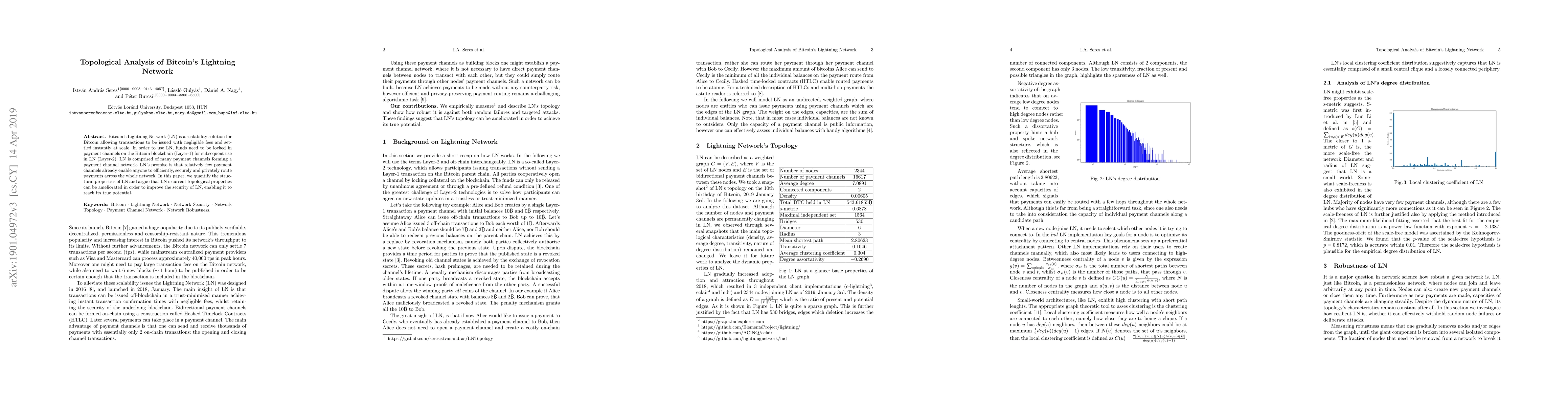 Bitcoin's Lightning Network (LN) is a scalability solution for Bitcoin allowing transactions to be issued with negligible fees and settled instantly at scale. In order to use LN, funds need to be locked in payment channels on the Bitcoin blockchain (Layer-1) for subsequent use in LN (Layer-2). LN is comprised of many payment channels forming a payment channel network. LN's promise is that relatively few payment channels already enable anyone to efficiently, securely and privately route payments across the whole network. In this paper, we quantify the structural properties of LN and argue that LN's current topological properties can be ameliorated in order to improve the security of LN, enabling it to reach its true potential.