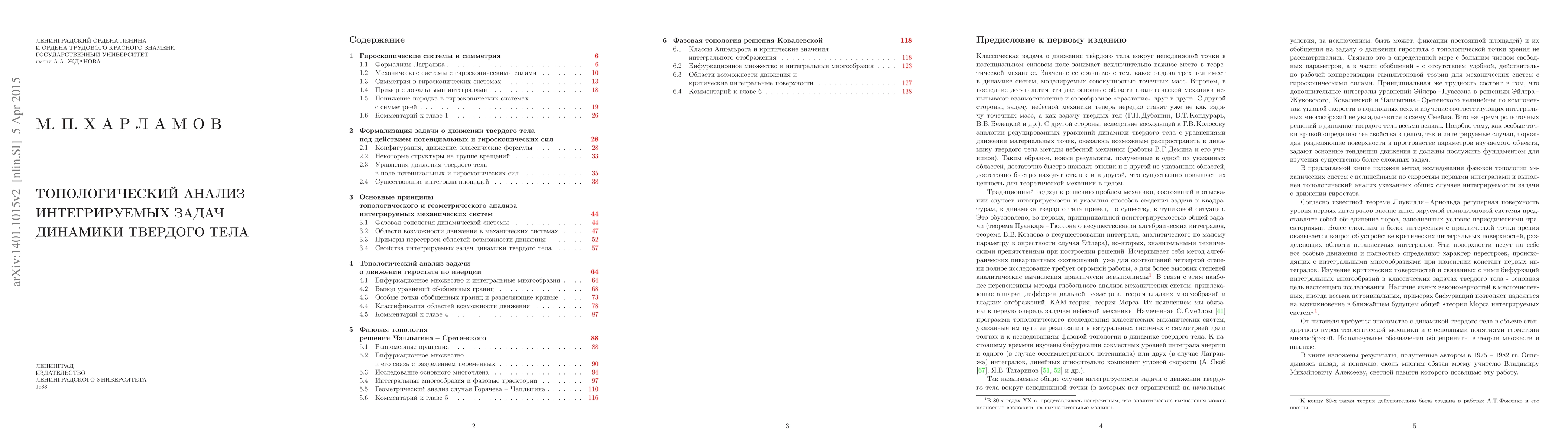 The book contains the results obtained by the author in 1975-1982 and presents new constructive methods of the topological analysis of integrable systems having non-linear integrals in involution. The phase topology of the classical integrable cases of the rigid body dynamics is investigated including the cases of Euler-Zhukovsky, Goryachev-Chaplygin-Sretenski and Kovalevskaya. All types of bifurcations of two-dimensional tori in these problems are revealed.