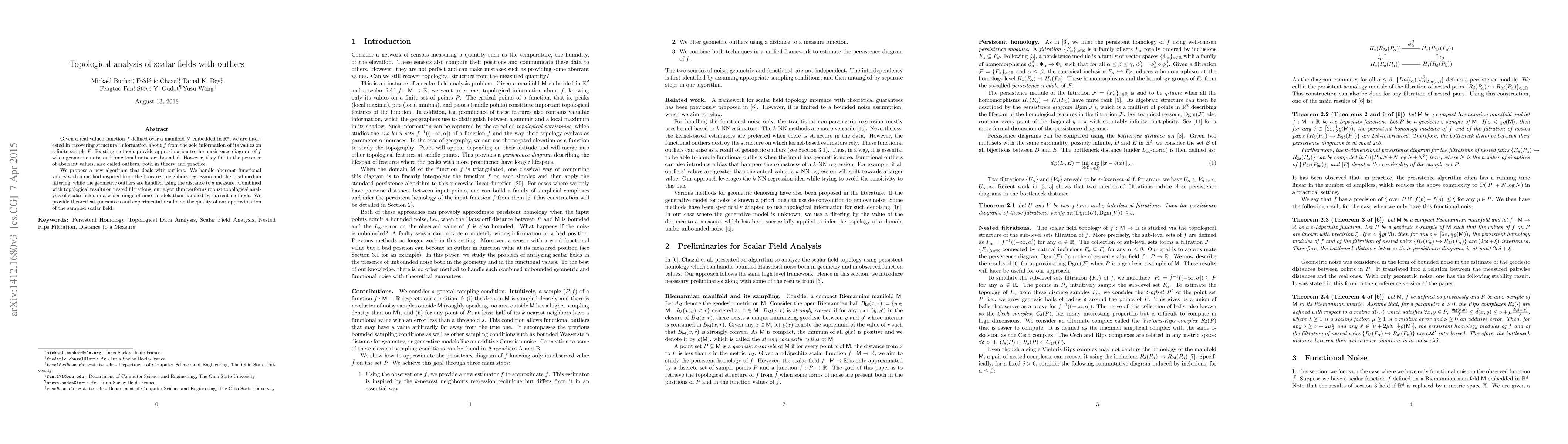 A new algorithm is proposed to analyze scalar fields with outliers, handling functional and geometric noise more robustly than existing methods. The algorithm provides theoretical guarantees and experimental results for a wider range of noise models.