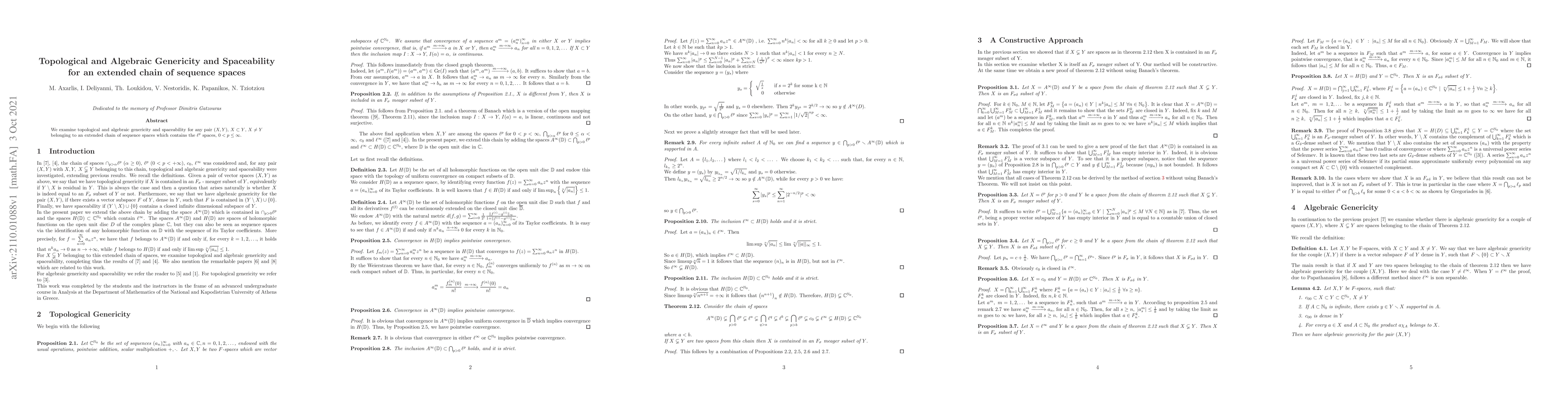 Summary: This paper investigates the topological and algebraic genericity and spaceability properties for pairs $(X,Y)$ within an extended sequence space chain, including $\ell^p$ spaces, where $X$ is a proper subset of $Y$. The study focuses on the structural characteristics and implications of these properties.