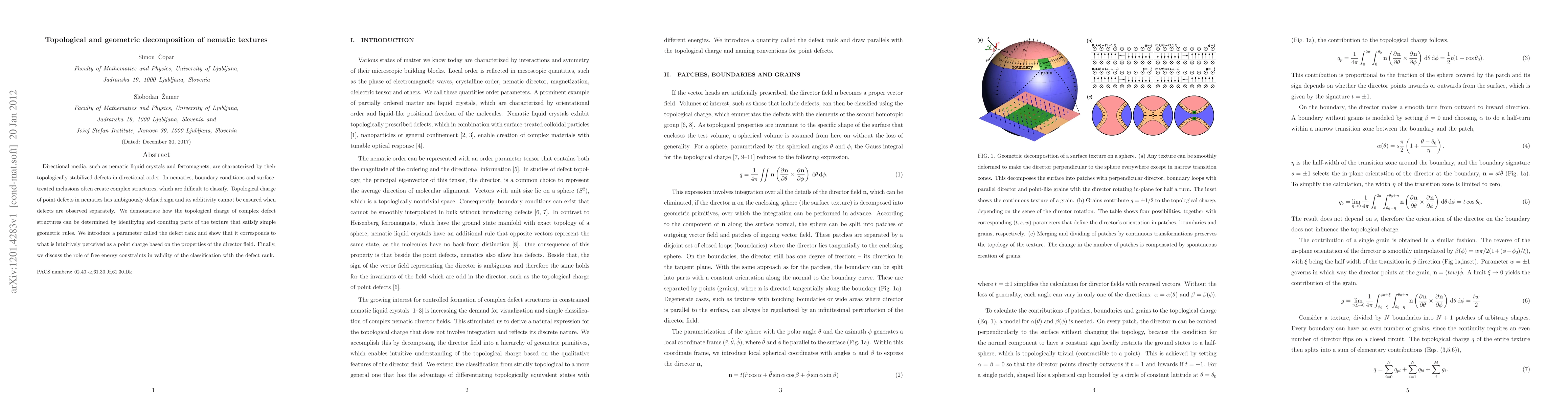 Directional media, such as nematic liquid crystals and ferromagnets, are characterized by their topologically stabilized defects in directional order. In nematics, boundary conditions and surface-treated inclusions often create complex structures, which are difficult to classify. Topological charge of point defects in nematics has ambiguously defined sign and its additivity cannot be ensured when defects are observed separately. We demonstrate how the topological charge of complex defect structures can be determined by identifying and counting parts of the texture that satisfy simple geometric rules. We introduce a parameter called the defect rank and show that it corresponds to what is intuitively perceived as a point charge based on the properties of the director field. Finally, we discuss the role of free energy constraints in validity of the classification with the defect rank.