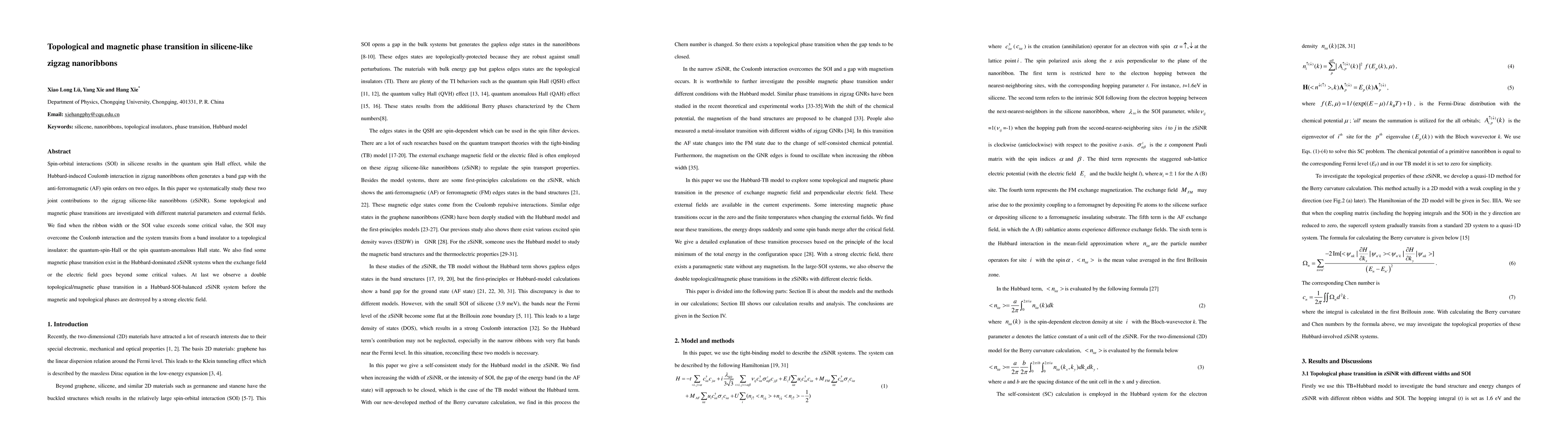 This paper investigates the topological and magnetic phase transitions in zigzag silicene nanoribbons, finding that spin-orbital interactions can induce a quantum spin Hall effect while Hubbard-induced Coulomb interactions generate band gaps and anti-ferromagnetic spin orders. It reveals a transition from a band insulator to a topological insulator when specific conditions are met, along with magnetic phase transitions influenced by external fields.